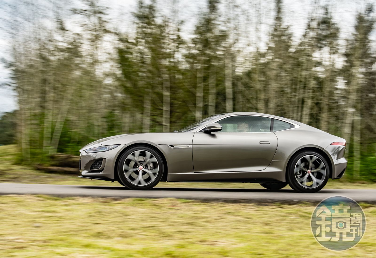 曾幾何時,人人嚮往的純種跑車已成票房毒藥,但對於有傳統的老牌車廠來說,打造純種跑車不僅是精神的傳承,更是為延續汽車文化盡上一份心力。首發於2012年的F-Type,其風格直接延續於品牌經典跑車E-Type,長車頭短車尾的流線造型是其最大亮點。而此次試駕的F-Type Coupe P300 R-dynamic則是經歷過中期改款的最新版本,除了在造型上更具銳氣之外,動力上亦有所調整,在保有其迅捷的野性之餘,也符合日趨嚴格的環保法規。
