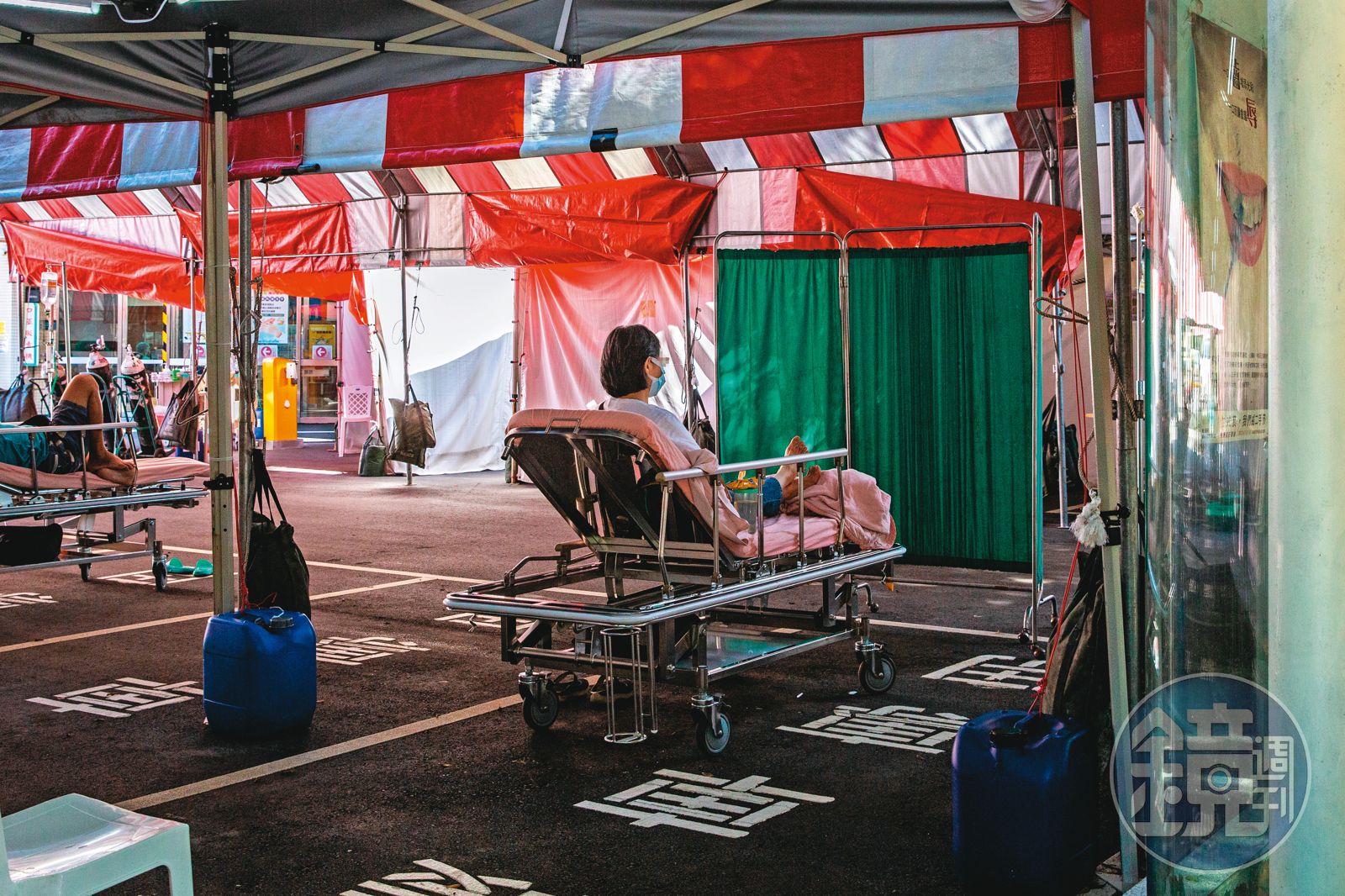 中興醫院護理師小平(化名)說,急診室有一間2人的負壓隔離病房,病床不夠,只好加擺2張床,醫師問診區也騰出來安置2位病患,連不該安置病人的等候區,也迫不得已放了1位病人。小小的負壓隔離病房臨時收治7位病人,「病人們必須共用衛浴,而且什麼事情都不能做,這當然會讓他們情緒爆炸,就找我們醫護人員發洩,我們處理他們情緒,又花更多時間。」帳篷區等待安置的病人5月25日共20位,到26日仍有9位;但帳篷原本設計只能在4個角落各安置一個人,至多共4人,最後病人全擠在一起。一名中興醫院護理師透露:「柯P來看他們,結果病人群體暴動,對柯P生氣抱怨怎麼會等這麼久,又熱又被蚊子叮。」