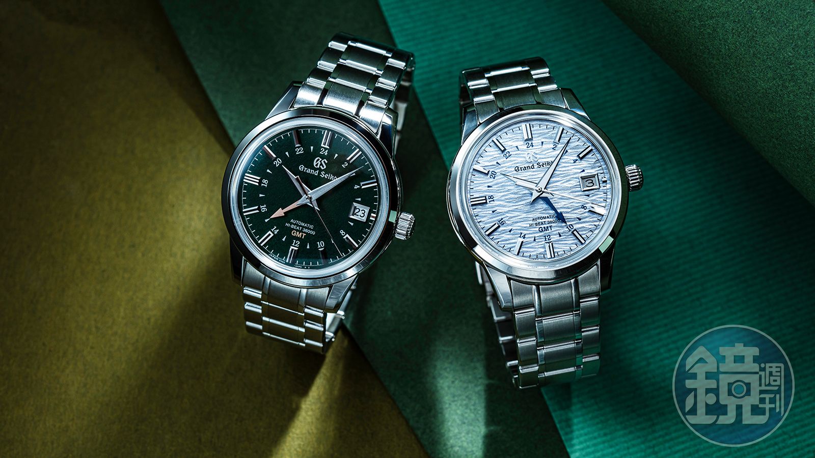 那天來刁難我們攝影師的是GRAND SEIKO的「春分」,它是GS今年新出的二十四節氣系列當中代表春天的一款,墨綠色的面盤上點綴著玫瑰金色的兩地時間指針和GMT字樣,象徵的是三月下旬深山密林中山櫻初開的景色。攝影師在傷腦筋的是這塊綠色面盤,因為它的綠非常深,深到在某些光線或角度下看起來就像黑色一樣,而且近看的時候還會發現盤面上有著如同和紙一般的不規則織紋,要透過鏡頭如實呈現我們用肉眼看到的色澤和質感,實在是個苦差事。