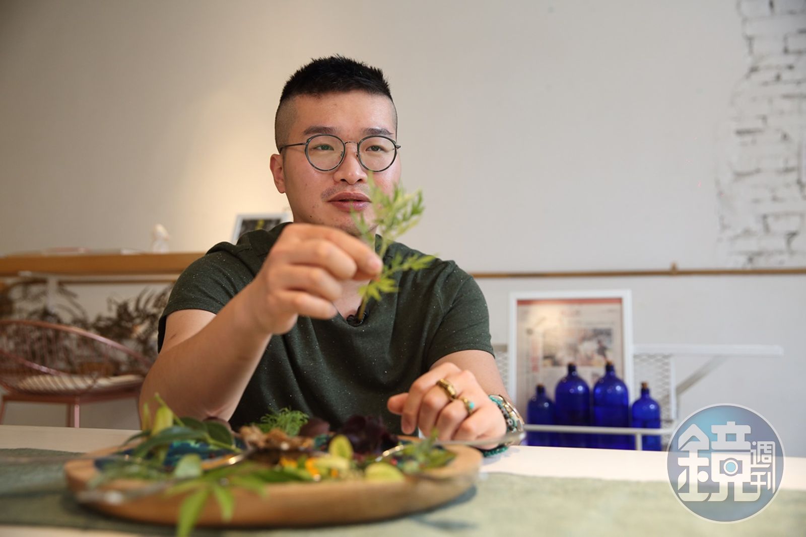 2018年,因工作壓力飽受思覺失調症所苦的李俊頡,病癒後在萬華開設以台灣野草為主題的咖啡廳。去年日常野草一度轉型為包場式的無菜單料理餐廳,近期因茶包銷量不錯,他結束餐飲服務,將重心放在茶包海內外通路的開拓上,也跟旅宿業者合作,推出客製化野草茶包。