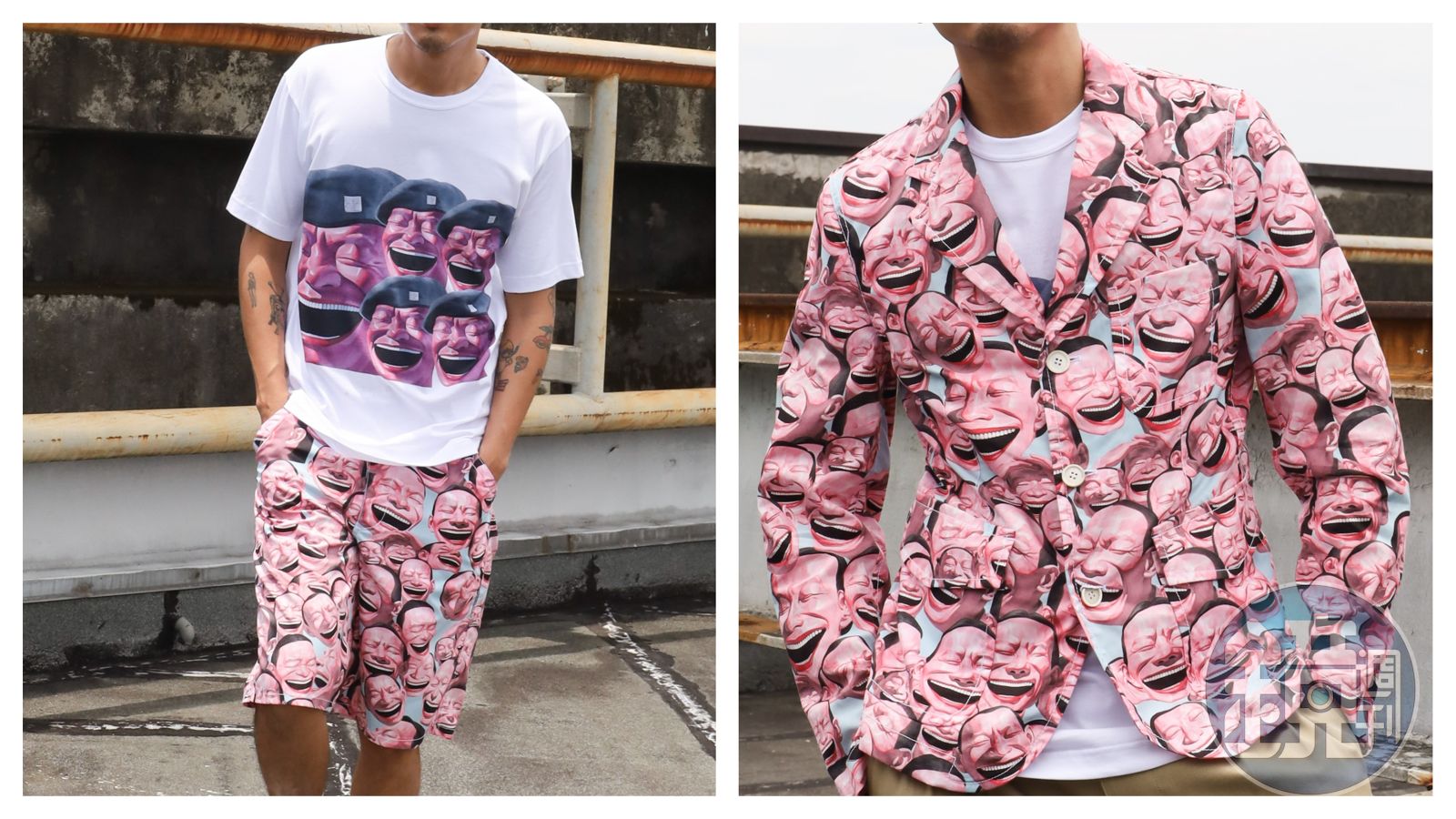 在家時髦不落人後 最新T恤團團線上幫妳準備好 基礎日常單品加上岳敏君的標誌創作,鮮明色彩增添視覺張力,且正式的西裝外套在滿佈的笑臉人印花詮釋中,表達自由不羈的玩心。笑臉人T-shirt NT $4,180 滿版笑臉人短褲 NT$18,500 Comme des Garçons Shirt x Yue Minjun(左)、笑臉人印花滿版西裝外套 NT$28,500 Comme des Garçons Shirt x Yue Minjun。(團團提供) 發布時間:2021.06.01 19:38 臺北時間
