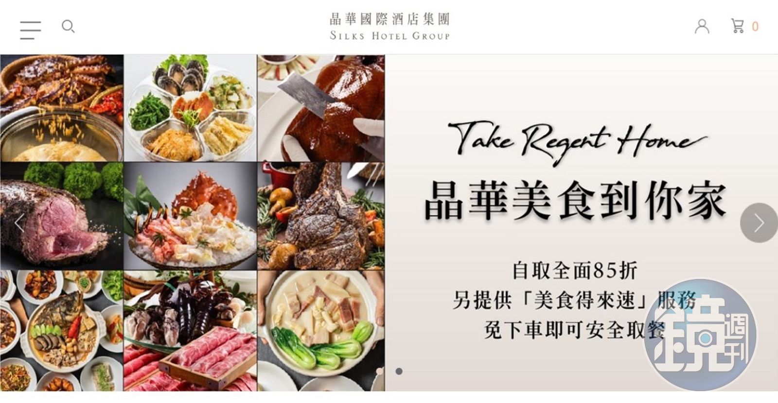 近日台北晶華酒店優化現有線上點餐平台,整合館內外8間餐廳,即日起「晶華美食到你家Take Regent Home」全新上線。 整合館內外的8間餐廳,台北晶華酒店館內三燔本家、azie、ROBIN’S、晶華軒、宴會廳、蘭亭俱樂部餐廳、及館外餐廳泰市場和Just Grill的菜色,都可以在同一個「晶華美食到你家」平台一併選購。