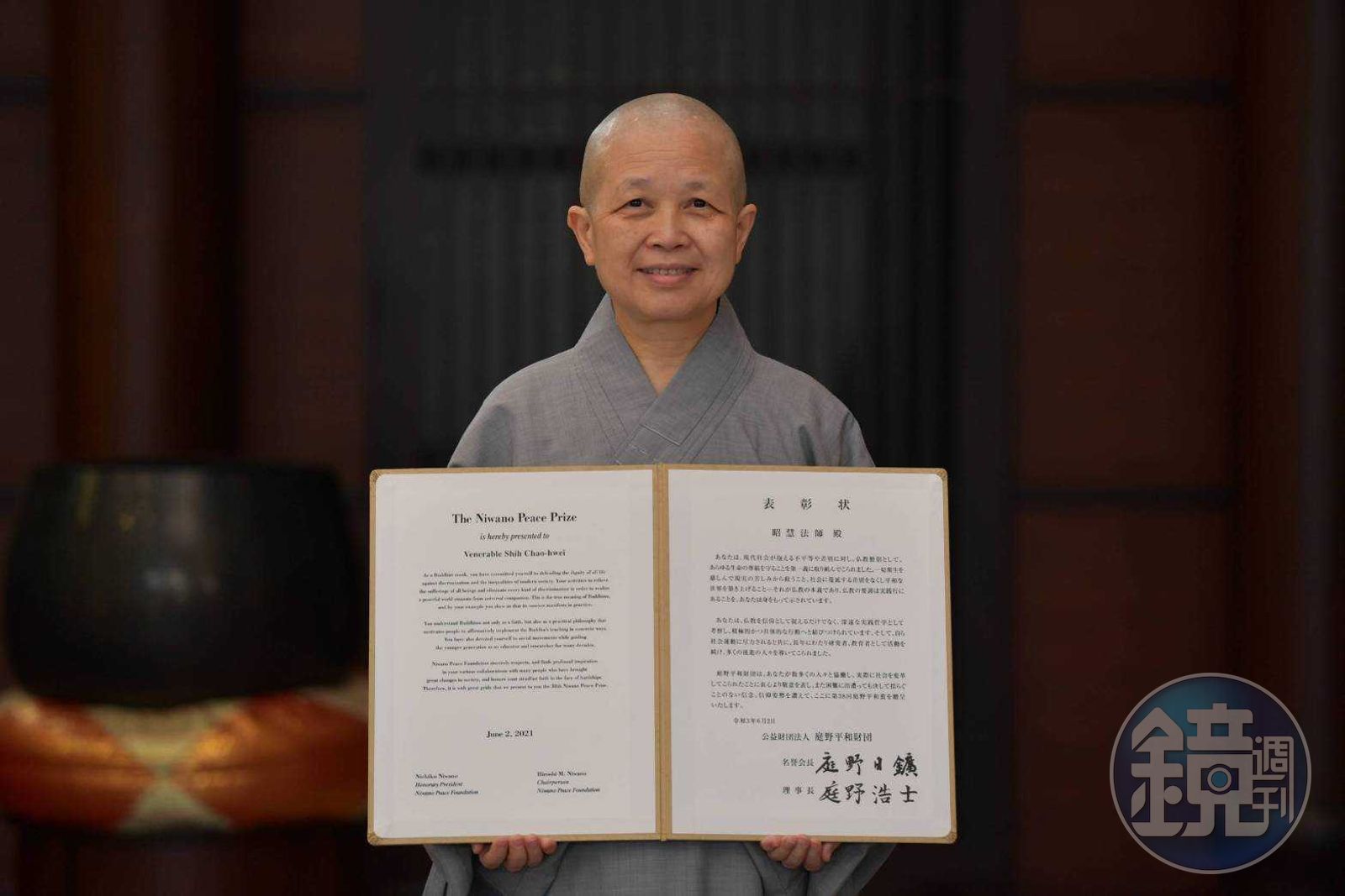 獲獎的昭慧法師1957年出生於緬甸仰光,1965年移居台灣,1978年剃度出家。目前在玄奘大學擔任教授,傳授宗教研究課程,並創立了佛教弘誓學院,作為佛教思想與實踐的教育中心。