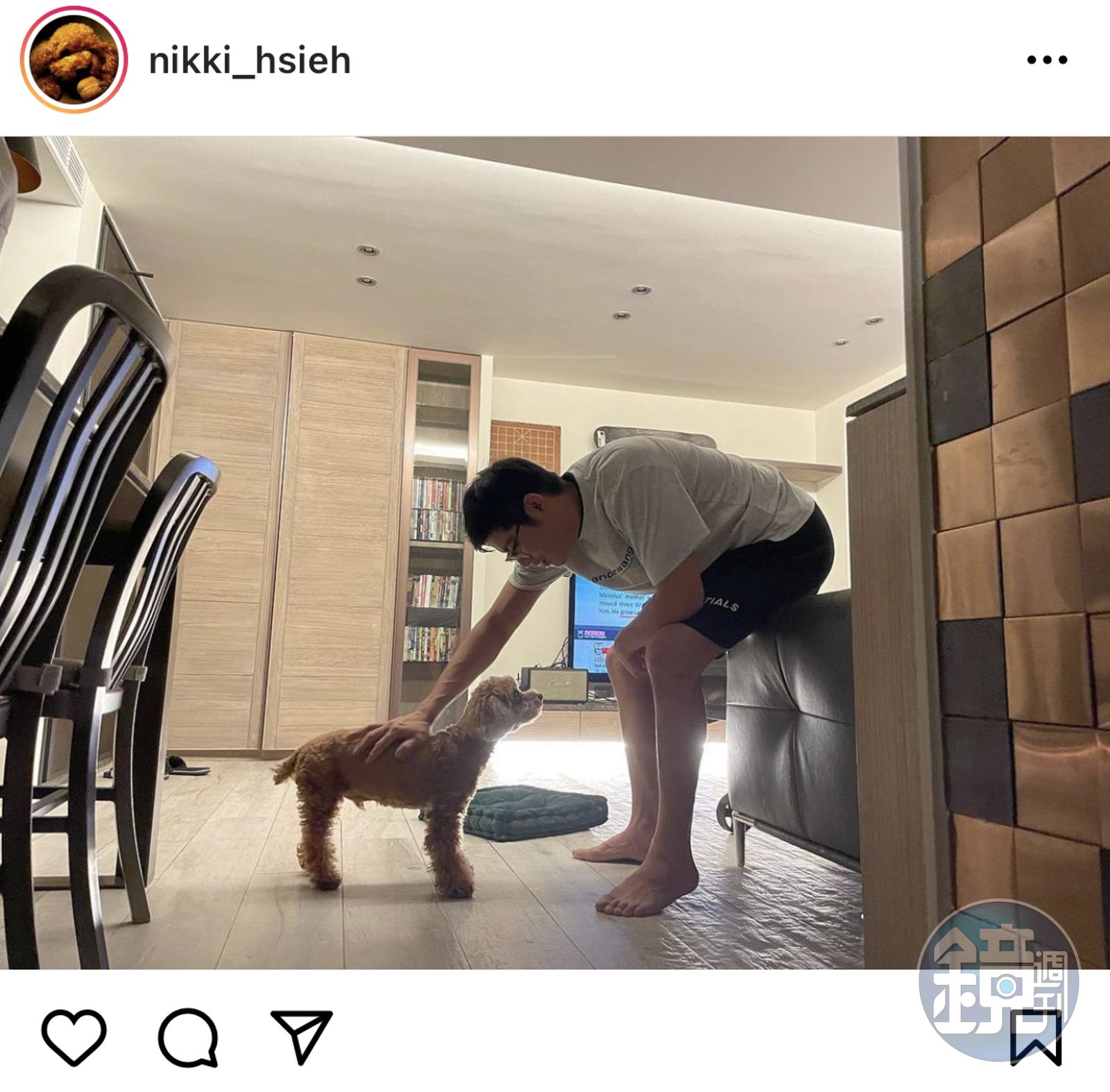 兩人有一隻愛犬貴賓,謝欣穎曬著王柏傑撫摸狗狗的照片說:「柴米夫妻の相夫教子」,為兩人甜甜的愛侶關係寫下新定義,也不少網友驚喜的問說,「該不會要閃婚吧!」這隻狗狗成為愛情的見證,之前他們也會兩人一狗躺在沙發上交疊,畫面濃情蜜意。