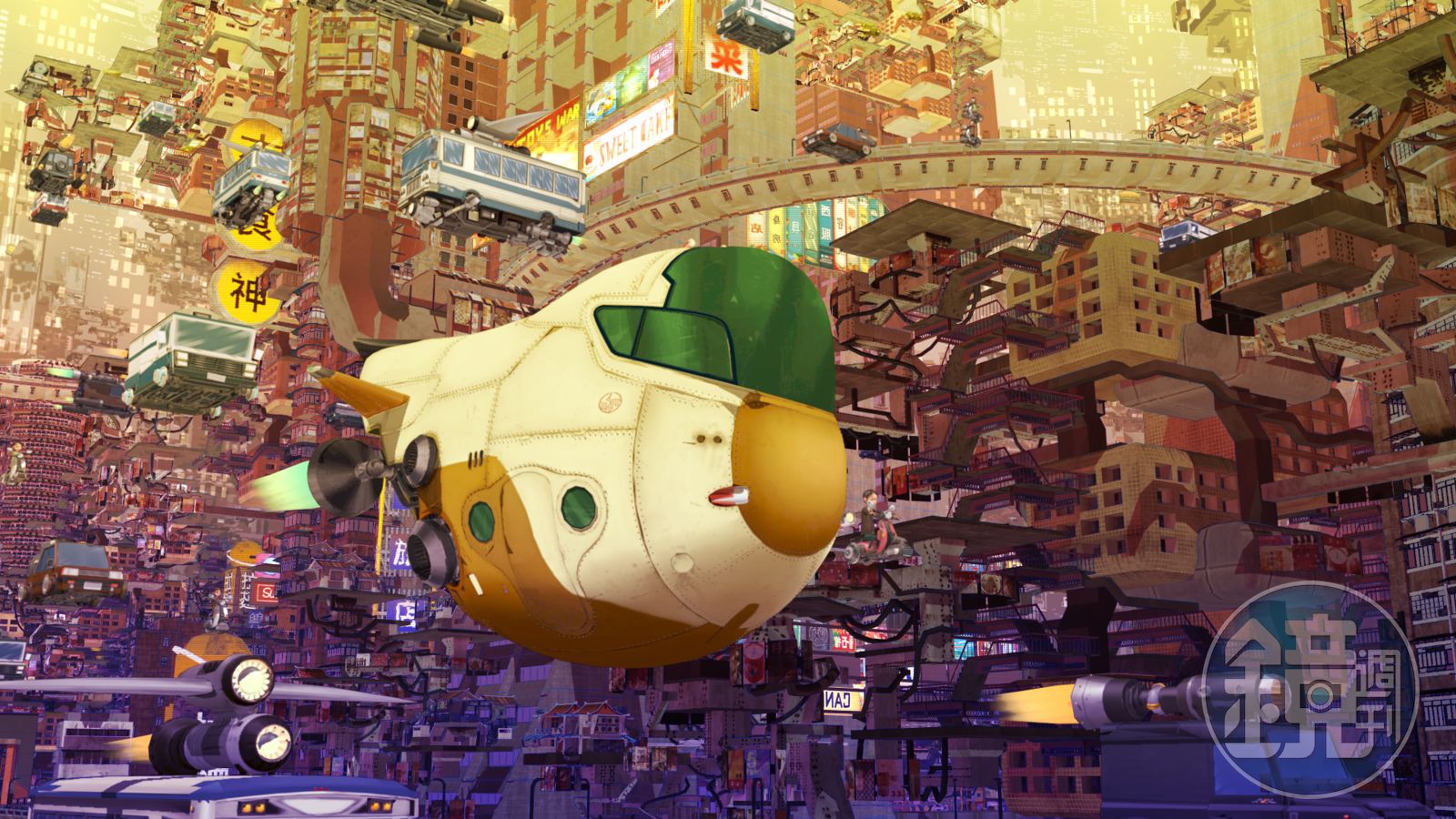 製作團隊也加上飛船、空中巴士等科幻片常見的元素,像堆積木般慢慢建構起八戒生活的世界。合成後再花2、3個月調整色調,建構科幻場景也耗費多時。