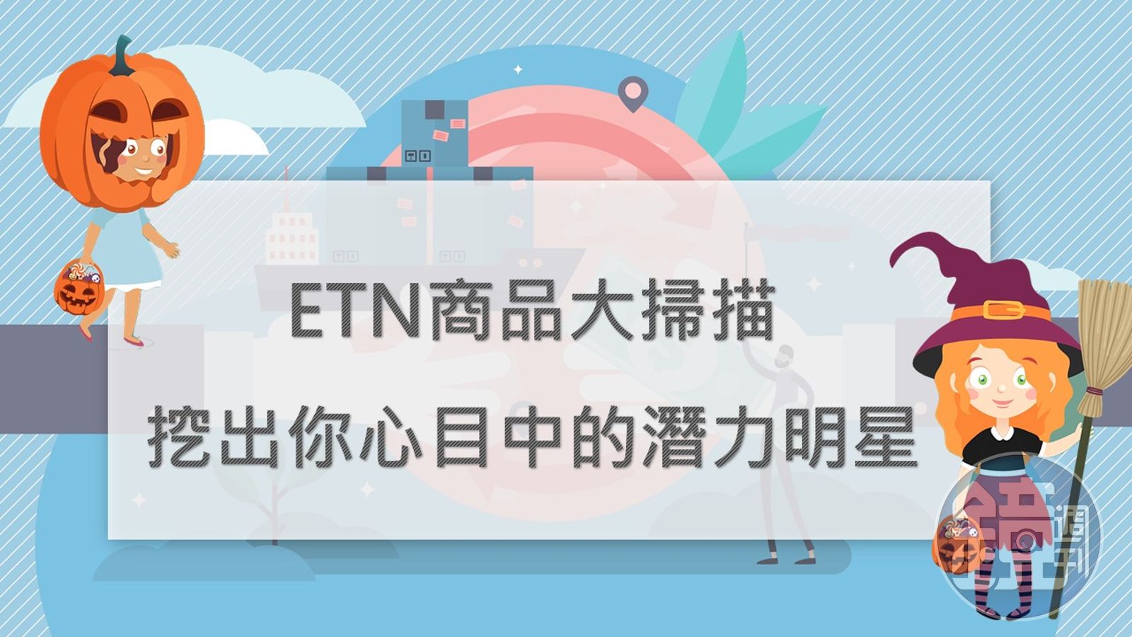 2021.06.04 05:59 臺北時間【圖解ETN2】ETN商品大掃描 挖出你心目中的潛力股財經理財發布時間:2021.06.04 05:59 臺北時間更新時間:2023.09.12 20:38 臺北時間文 李宇涵已複製連結贊助本文加入訂閱會員投資產業市場海外指數ETN追蹤標的指數已成投資界的顯學,其中,價格親民的ETN近年來績效亮眼,吸引不少投資人注意。目前國內有29檔ETN掛牌上市,追蹤指數不盡相同,投資人該如何挑選呢?以追蹤標的的屬性來區分,目前市場上的ETN大致可分為市場指數型、產業型、主題型及海外型,追求高報酬或者保守投資人分別適合投資什麼呢?以下用10張圖帶你快速了解。更新時間|2023.09.12 20:38 臺北時間延伸閱讀【圖解ETN1】小資族看過來! 1分鐘搞懂ETN與ETF【理財最前線】小資族輕鬆賺 ETN投資攻略大公開【ETF好好存1】連10年配息好穩當 這檔人氣國民ETF股價也創高【ETF好好存2】高息ETF大漲心好癢 不敗教主透露正在買的是這檔【ETF好好存3】不僅賺息收價差更威猛 這檔高息ETF半年默默漲3成支持鏡週刊小心意大意義小額贊助鏡週刊!贊助本文每期 $35 元動態話題報導無限閱讀解鎖新鮮事加入訂閱會員鏡週刊加入追蹤訂閱下載鏡週刊加入追蹤訂閱下載更多內容,歡迎 鏡週刊紙本雜誌、鏡週刊數位訂閱、了解內容授權資訊。獨家深度分析報導線上閱讀