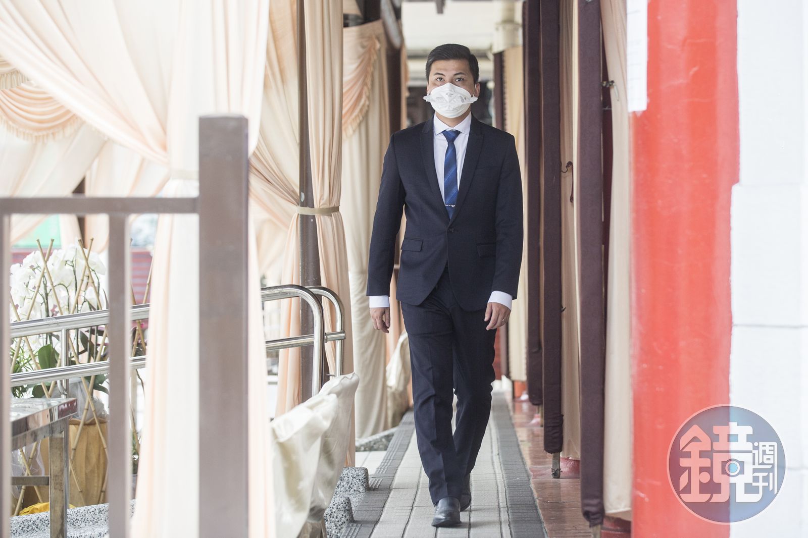 郭憲鴻步伐略快地走往冬瓜行旅會館,除了萬年不變的西裝、皮鞋,這陣子他的工作「制服」還加上N95口罩與護目鏡。門口3名長者見他到來,熱絡迎向前欲攀談,郭憲鴻卻往後退了一步、拉開距離,「我最近常到高風險的地方,還是遠一點比較好。」前幾日,他剛替友人送走至親,死因為新冠肺炎,半個月來,冬瓜行旅已經接了逾20個這樣的案子。