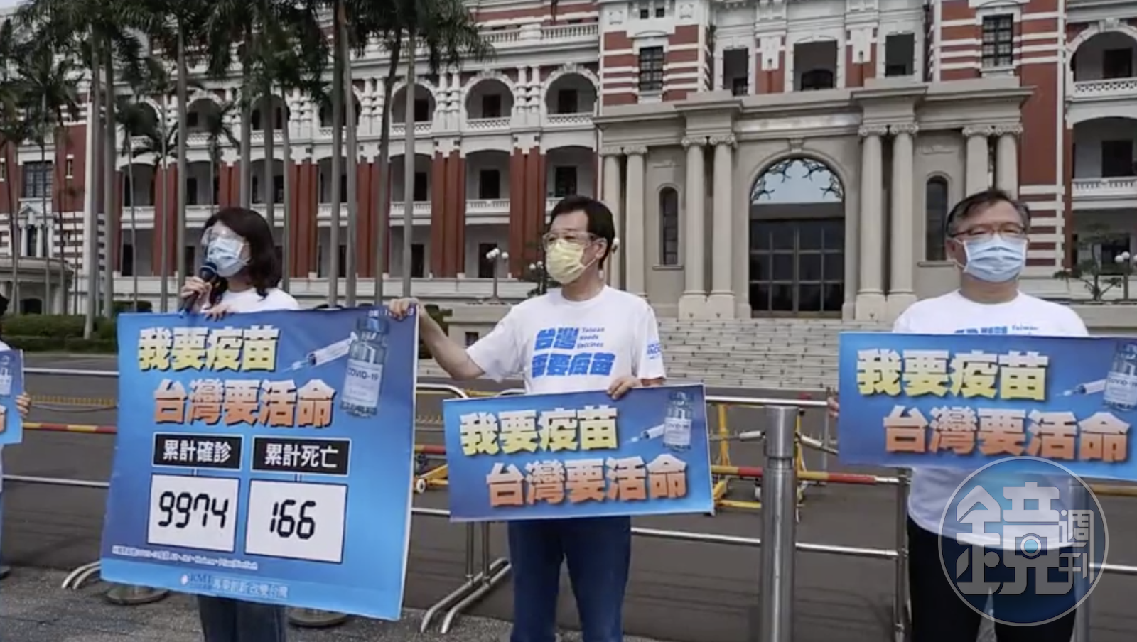國內新冠肺炎(COVID-19)本土疫情嚴峻,政府也為疫苗取得焦頭爛額。前新聞局長鍾琴、國民黨立委鄭正鈐則號召「小英!給我疫苗」快閃活動,近日國民黨將於6日發動「挺醫護要疫苗、6/6齊發聲」行動,並於晚間8點熄燈1分鐘,向蔡政府表達無聲抗議。國民黨團今(4)日也發起繞行總統府、疾管署要疫苗的抗議活動。