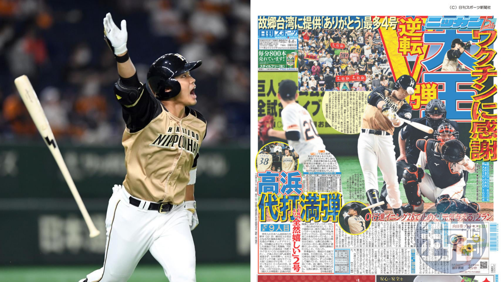 「大王」王柏融昨日擔任先發第5棒、左外野手,雖然前2打席都吞K,但在7局上1出局、一壘有人時,抓住讀賣巨人先發投手戶郷翔征147公里的速球,將球擊出右外野全壘打牆,將比數逆轉為2:1,球隊最終以6:4獲勝,這也是王柏融本季第4轟,創下個人單季全壘打新高。
