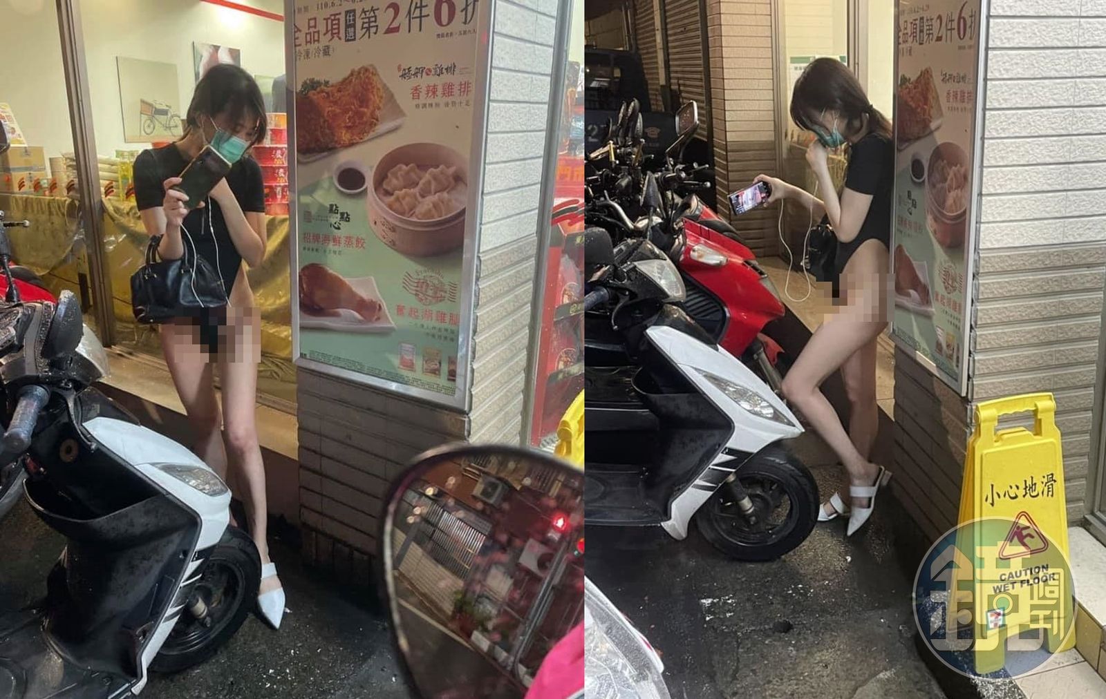 一名網友(5日)在臉書社團「爆廢公社公開版」PO文「台北淹水穿泳衣出門」,並貼出3張香豔照,一名戴口罩、綁馬尾的辣妹,穿著短袖黑色「高衩連身衣」站在超商前,一手拎著包包,另一手則拿著手機,並戴著耳機線,疑似是在講視訊電話或直播,讓他當下忍不住拍下眼前這個「奇景」。