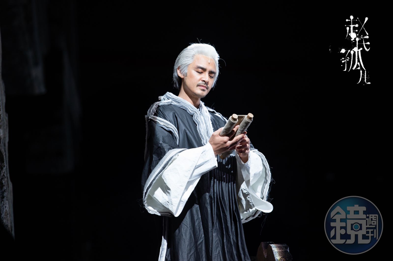 明道飾演的重要反派屠岸賈,角色被形容令人畏懼,且以恐懼換權謀,以殘暴做堅強,他在舞台上最殘酷的行為就是要手刃嗷嗷待哺的趙氏遺孤,甚至還將遺孤剁成三段,而他一連演出10場,這凶殘的行為就上演了10次,殘忍的行徑與凶狠眼神,震攝了在場所有觀眾,形容自己的「明式使壞心法」除了眼神凶猛到要讓對方退避三舍外,大魔王般的氣場更不容忽視,「要有讓人動彈不得的氣勢」,有別與他以往霸氣總裁形象。