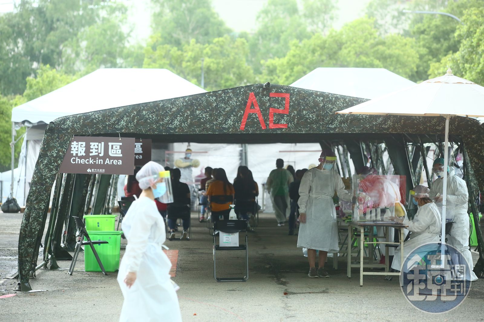 本土疫情連環爆,短短20多天,全台染疫人數破萬人,死亡200餘人,疫情從重災區雙北市向南延燒,就連科技重鎮新竹科學園區也拉警報。6月4日,位於苗栗的封測廠京元電驚爆外籍移工群聚感染,確診人數已破200人,中央緊急赴苗栗成立前進指揮所,更史無前例地動員國軍進駐新竹科學園區搭快篩站,提供業者快篩。