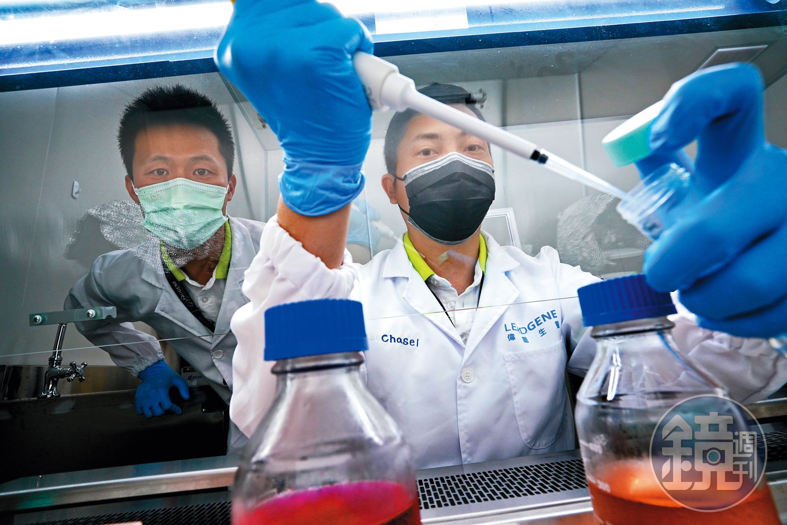 因應本土新冠肺炎疫情加劇,中央流行疫情指揮中心開放企業進行自費快篩,國內檢測需求量大增,身為供應國內4家上市櫃生技大廠快篩試劑主原料的偉喬生醫董事長莊詠鈞與執行長鄭又瑋,2人已經連續數週,即使假日都進實驗室加班生產。