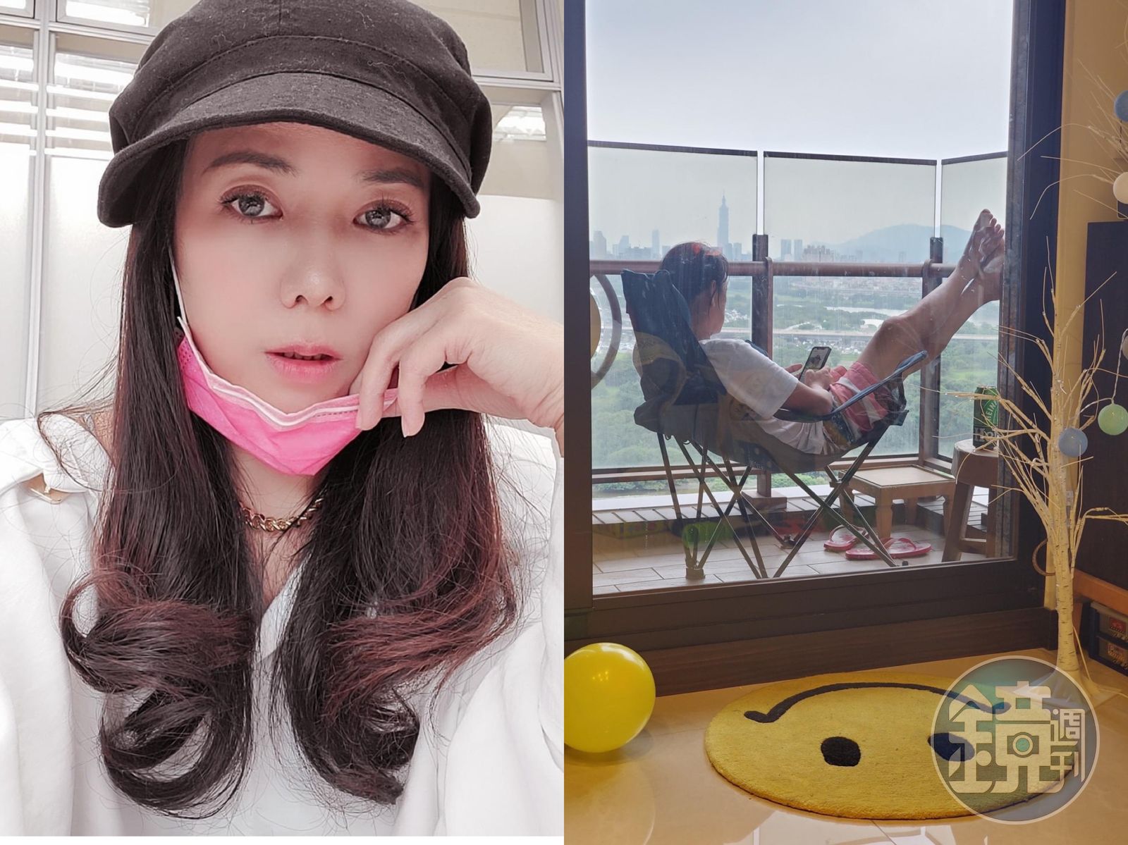 陳仙梅抱怨老公不幫忙盯小孩課業,情願躲在陽台忍受高溫曝曬與人車喧擾。(翻攝自陳仙梅臉書)發布時間:2021.06.09 12:52 臺北時間