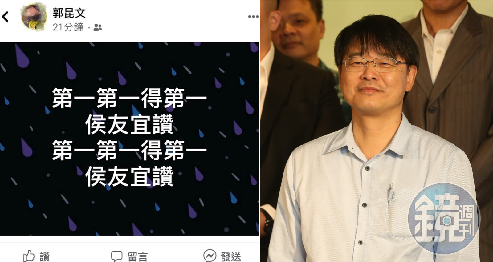 郭昆文在臉書po文「第一第一得第一,侯友宜讚」,被藍營市議員李柏毅轉發,表示希望他的稱讚不是反諷,「第一」不是指確診人數,「因為如果到了現在,還有人用意識形態、藍綠陣營來做政治防疫,那真是全民的不幸」。