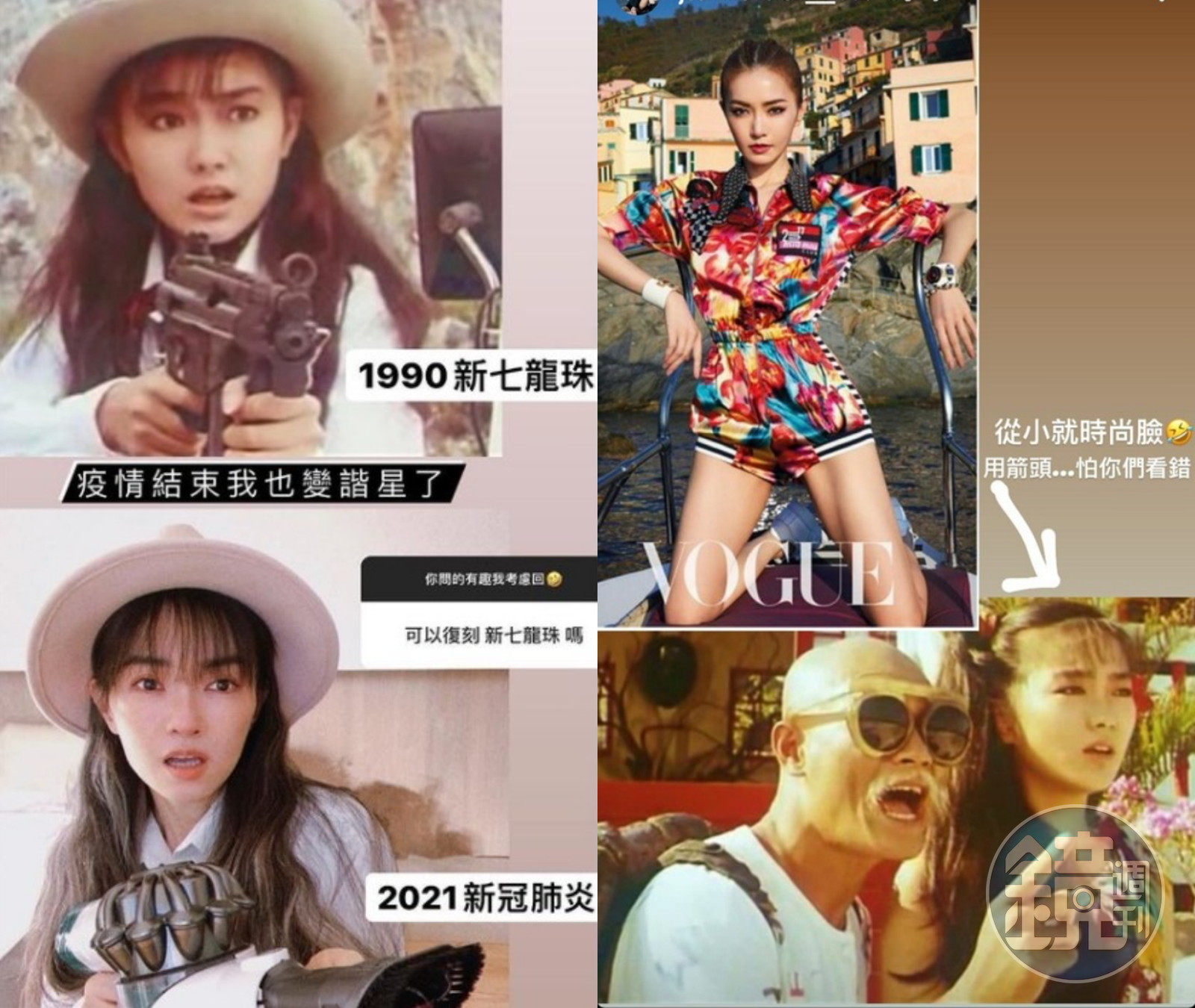 謝金燕PO出1991年《新七龍珠》照片,她留著空氣瀏海、長捲髮,手裡舉著槍,皺眉張嘴,30年後,她模仿同樣的畫面,從髮型到穿搭都幾乎一模模一樣樣,連表情都沒變,改用吸塵器代替電影中她拿的槍。 近來也停工待在家的謝金燕寫道,「疫情結束,我也變諧星了」「我是不是太聽話」,笑說娛人也娛己,希望跟大家一起健康正向度過最近這段時間,「我們一定要撐住,也一定會撐住。」 許多粉絲對於姐姐謝金燕凍齡容貌都大感驚訝,「根本沒變過!還是一樣少女」「看圖找不同:除了手上拿的東西不一樣,其他都是一樣的」。