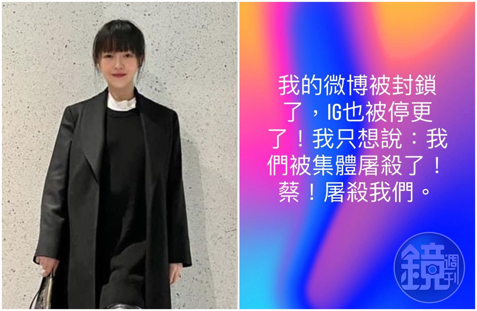 大S半夜連續激動發文「我的微博被封鎖了,IG也被停更了!我只想說:我們被集體屠殺了!蔡!屠殺我們」「這算是集體屠殺吧」等引起爭議,不只在台灣PTT引起討論,微博也掀起一陣熱議。而妹妹小S對於大S的發言,僅以「不了」回答。