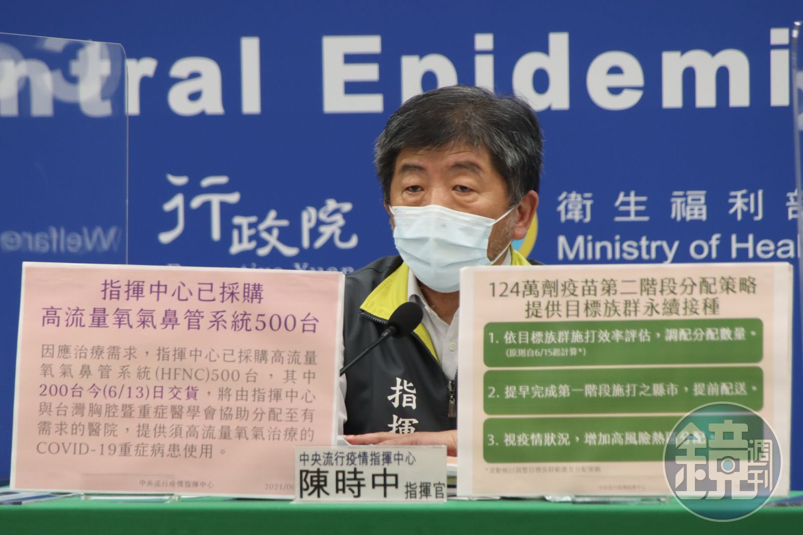 陳時中表示,指揮中心已採購500台HFNC,其中200台會在今天交貨,將由台灣胸腔及重症醫學會協助分配到有需求的醫院。(指揮中心提供)發布時間:2021.06.13 15:26 臺北時間