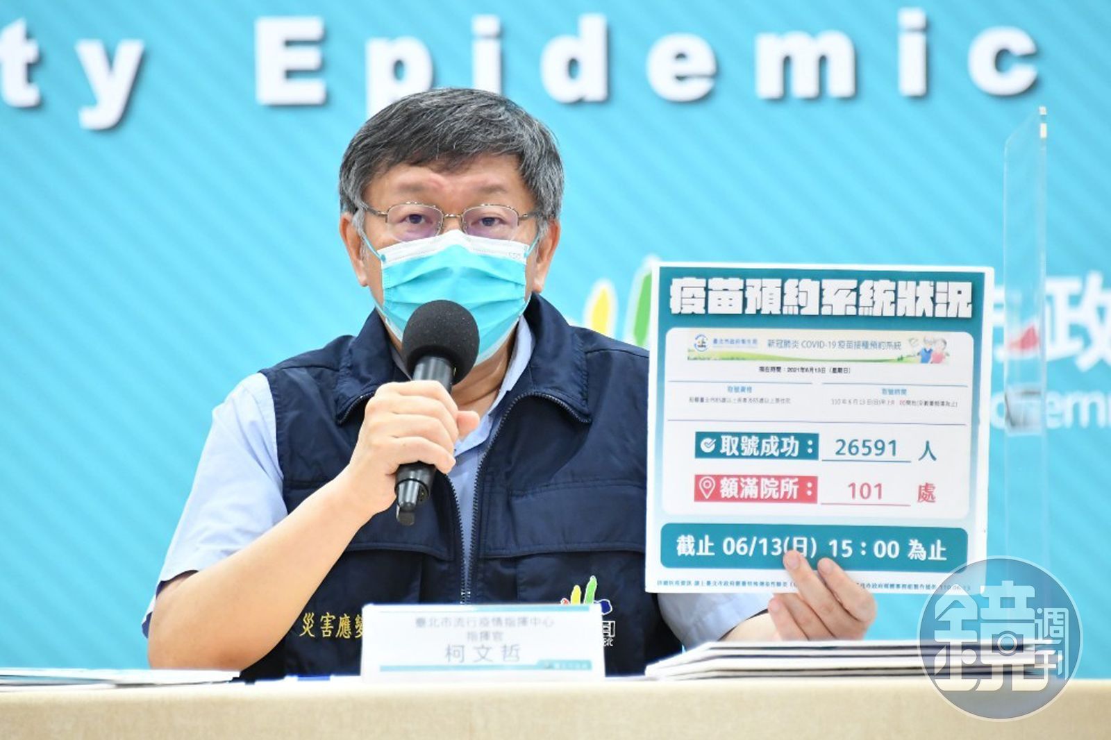 柯文哲表示,網路疫苗預約系統有通過考驗,設籍北市的85歲以上長者已經有2萬6,591人成功取號,172個注射點已經有101處客滿,呼籲市民盡量上網預約打疫苗,雖然今天會把通知單發下去,若沒有預約成功,市府還是會告訴你什麼時間、去哪裡打疫苗。