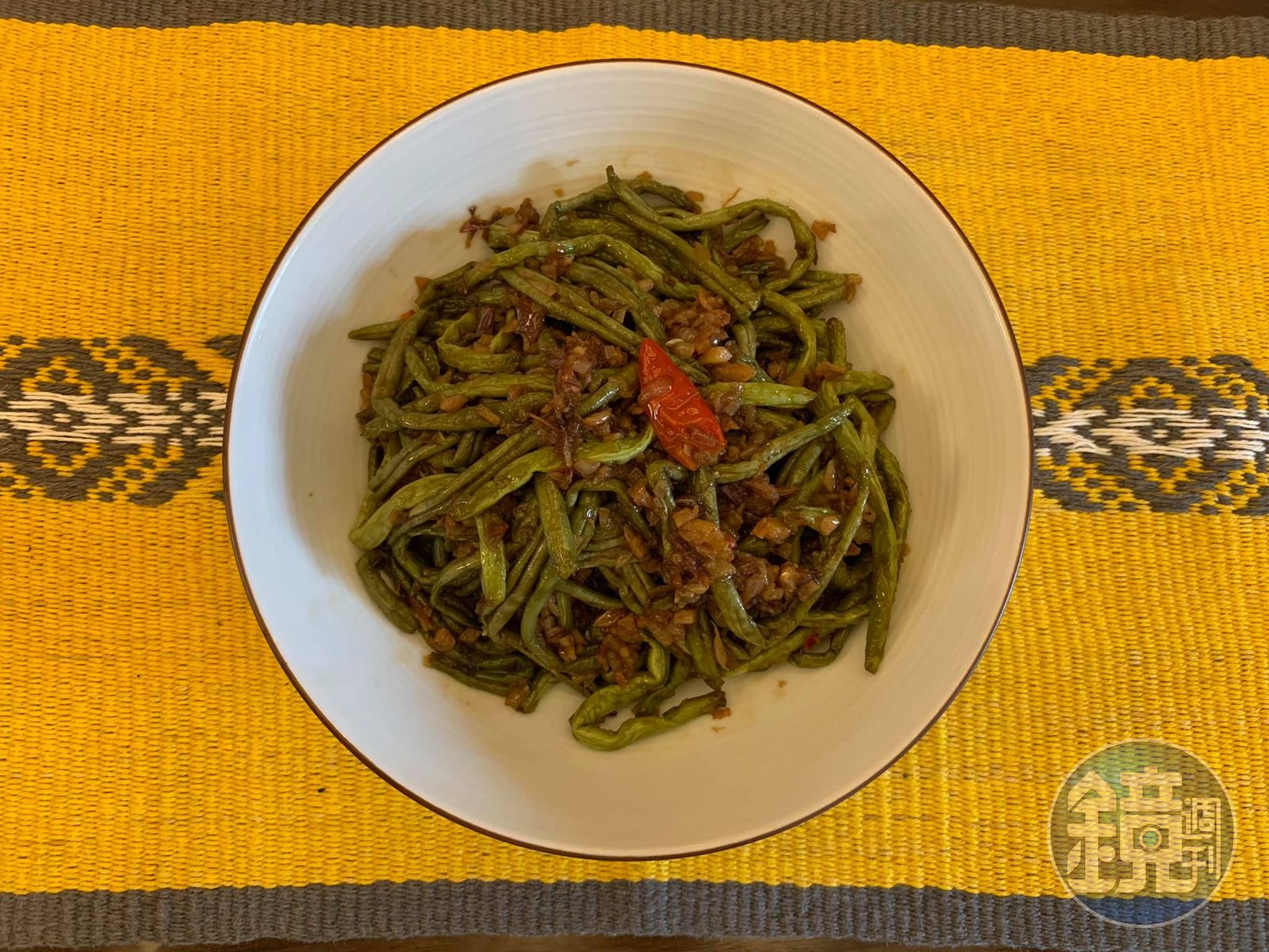 我的乾煸四季豆是跟億長御坊老闆娘討教的。不過,她有放肉末,我則是用蝦米取代。所謂乾煸是老功夫。現代人沒那麼多功夫真正乾煸,餐廳大多用油炸取代。我也覺得油炸四季豆,炸到表面縮水,略為焦黃,短時間將四季豆水份和甜份鎖在裡面,做這道菜比較不容易失敗,可行。