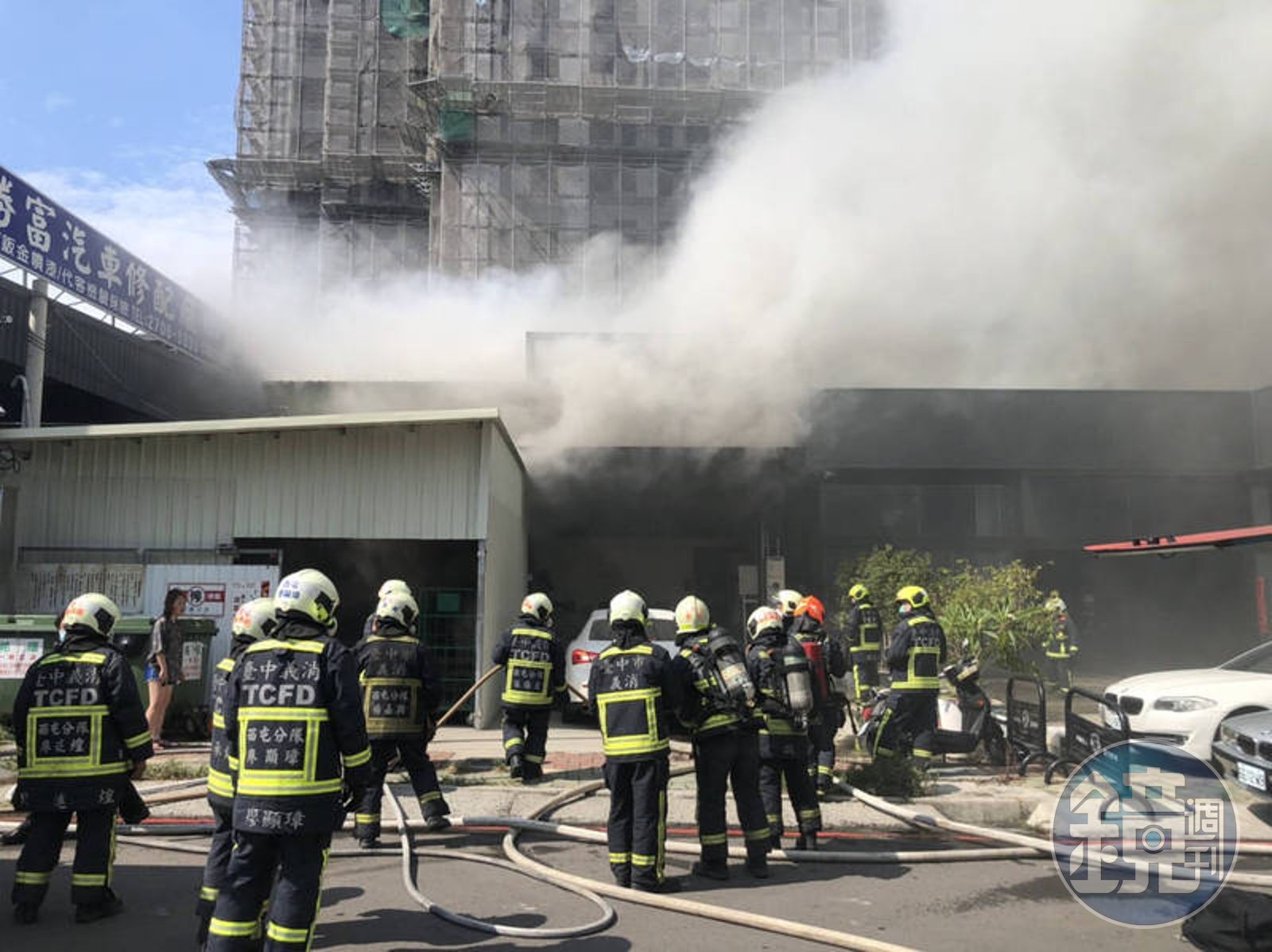 這時,隔壁一家超跑租賃公司停放20台名貴跑車,價值超過1億元,另一家修車廠也岌岌可危,恐被延燒,於是勤務中心又增派大雅、中港2個分隊,共22車、63人,全力灌救,火勢在一個小時內宣告撲滅。