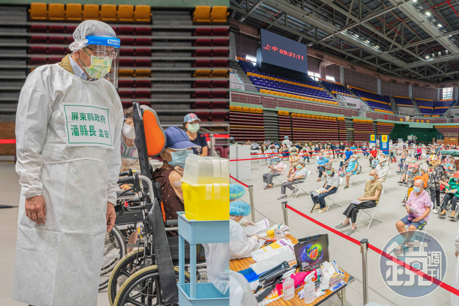 另外屏東也從源頭分流,讓村里長及村幹事通知長者依時段到場接種疫苗,解決人潮壅塞的問題,並同步啟用「復康巴士、長照專車」以及輪椅,加上規畫專用通道,解決身障者和行動不便的困難,甚至現場還有7、80位社工。雖然現場人員眾多,不過每一區施打一輪後,環保單位立即全面清消,再進行下一輪的作業,將潛藏的任何危機降到最低。