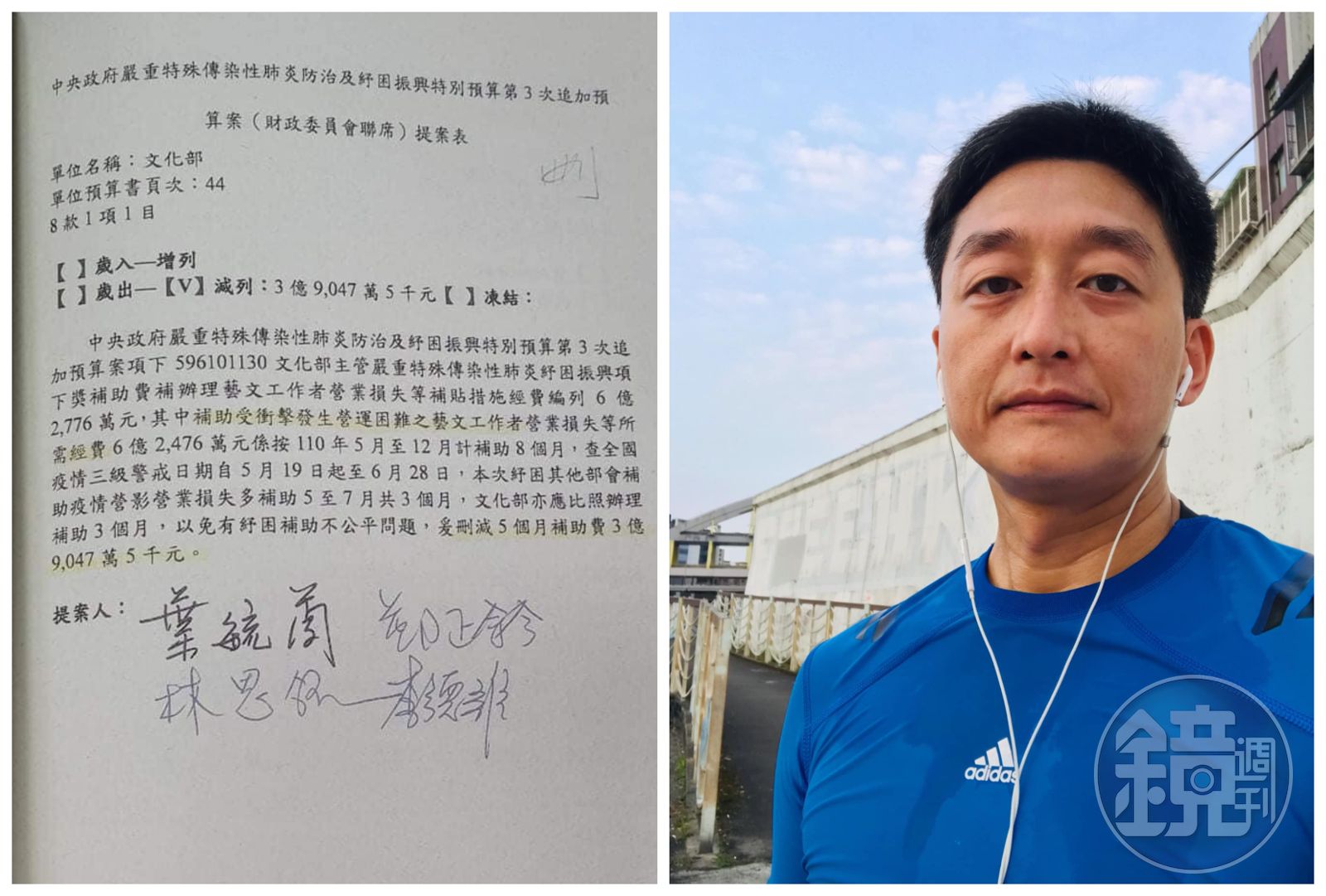 柯宇綸昨在臉書寫道,文化產業的工作者真的很辛苦,大錢賺不到,小錢求個溫飽,能夠賺很多錢的只有極少部分藝人和創作者,大部分都是接案子維生,完全是靠熱情在支撐。他點名國民黨4立委葉毓蘭、鄭正鈐、李德維和林思銘,「你們不重視文化和體育也不是一天兩天,今天把藝文界5個月的補助就這樣刪掉,再怎麼不吃不喝一天一餐,房租、水電、瓦斯這最基本開銷都要付,我相信很多人必須依靠這筆援助」。