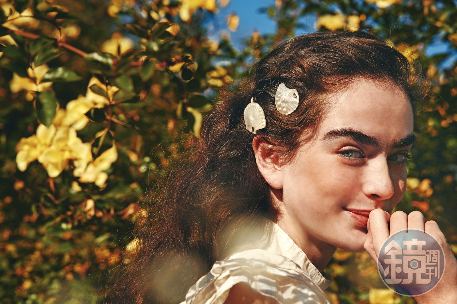 漂亮的髮飾能為螢幕前的妳大大加分。(左起)珍珠扇貝豆扣夾NT$3,600、珍珠彎貝豆扣夾NT$3,200(Alexandre de Paris提供)發布時間:2021.06.25 09:58 臺北時間