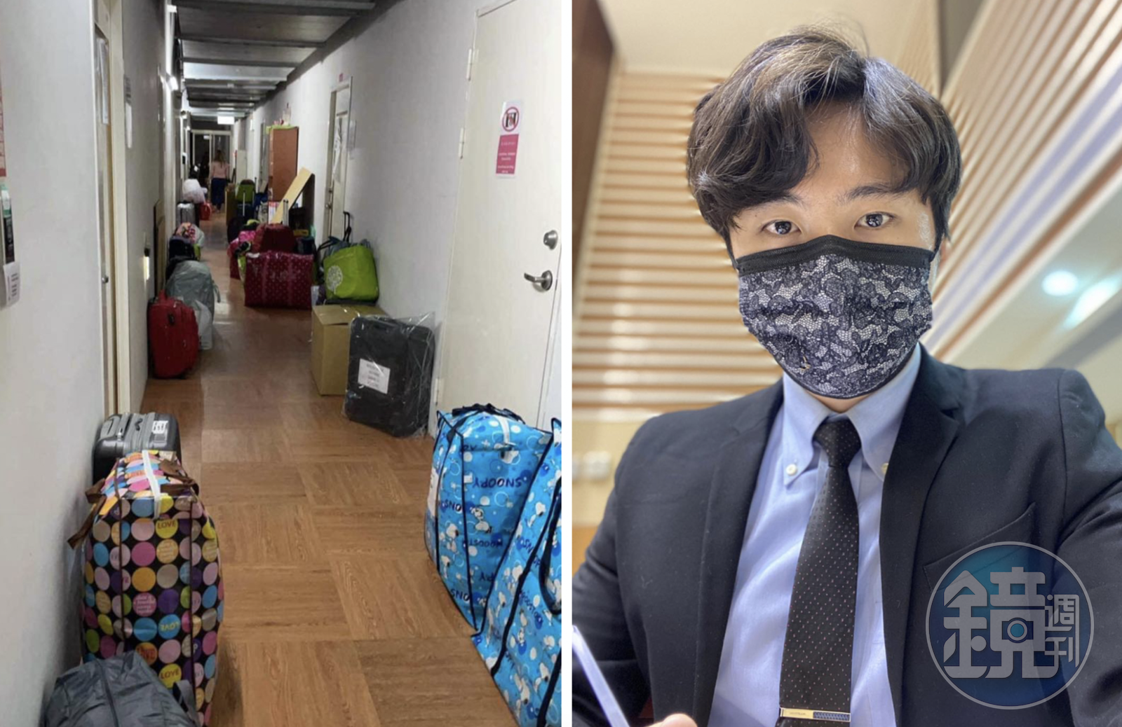 曾玟學於臉書貼出被行李佔滿的走道照片,表示昨晚陸續收到數十個不同帳號,分別從Line及臉書粉專傳來的訊息,都在說這件事。他指出,被隔離的移工向他投訴,隔離兩週回來後,看到自己的東西通通被堆在走廊上。