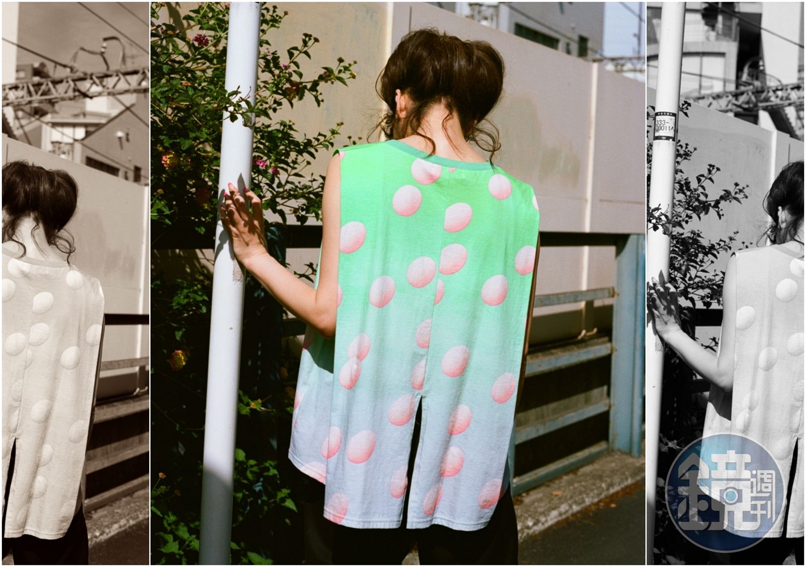 背面開衩設計帶有雞蛋圖案,為無袖上衣增添亮點,以對比色調呈現更加凸顯趣味的風格。 Ran聯名無袖上衣(蛋)。NT$8,600。 (君梵)發布時間:2021.06.20 11:21 臺北時間