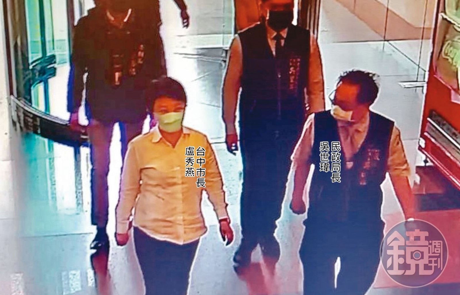 劉麗萍調閱大樓監視器影像,並指著畫面告訴本刊:「就連市長盧秀燕、立法院副院長蔡其昌,還有民政局長吳世瑋、議員等,都到我們這棟大樓參加華梵為某議員家屬舉辦的告別式,或到華梵開設的小靈堂上香,市長都親自出席背書了,民政局怎敢開罰?」
