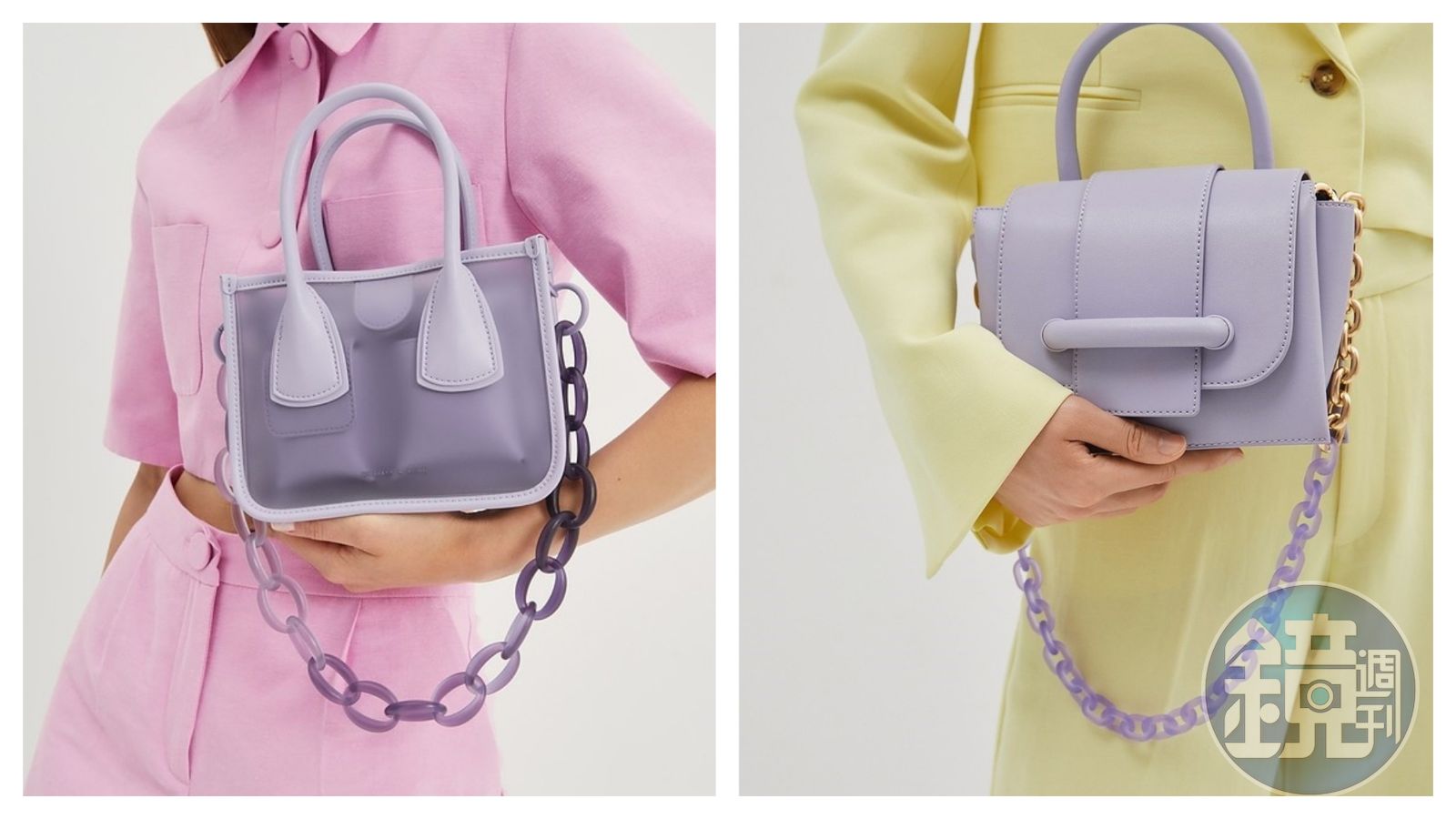 最近有被麥當勞的BTS套餐燒到的舉手!那一抹淺淺的紫色不知道迷死多少人,而CHARLES & KEITH精選一系列紫色商品,ARMY們千萬別錯過!(左)果凍拼接手提包NT$2,490元、(右)寬皮帶造型手提包 NT$2,590。(CHARLES & KEITH提供)發布時間:2021.06.21 17:00 臺北時間