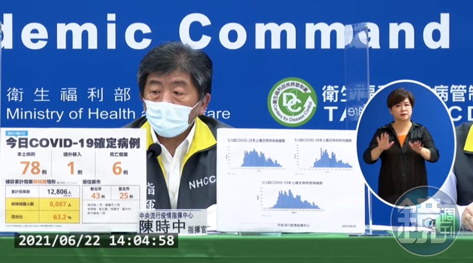 指揮中心說明,有關6例死亡個案,分別為男性3位、女性3位,年齡介於50多歲至80多歲,發病日介於5月19日至6月19日,確診日介於5月28日至6月21日,死亡日介於6月17日至21日。