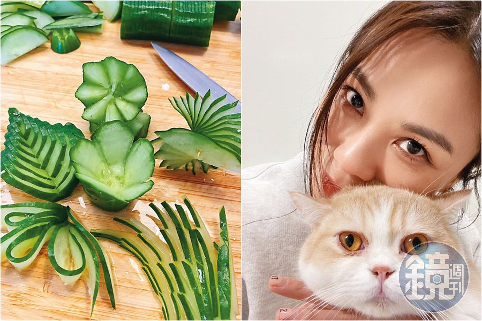蔡健雅原計畫今年籌備新專輯,但受疫情影響,只好乖乖宅在家。這位金曲歌后最近迷上種菜與健康料理,特別是創意擺盤,連芒果、小黃瓜都放不過;她不只將芒果雕琢成金魚的模樣,更將小黃瓜細切出8層金字塔,精湛的刀工讓人嘆為觀止,難道這就是《中華一番!》第10話-傳說的「羅漢水晶斬」?(嚇到後退3步)蔡健雅苦笑說:「想到這2天要吃的小黃瓜,就抖了一下。」