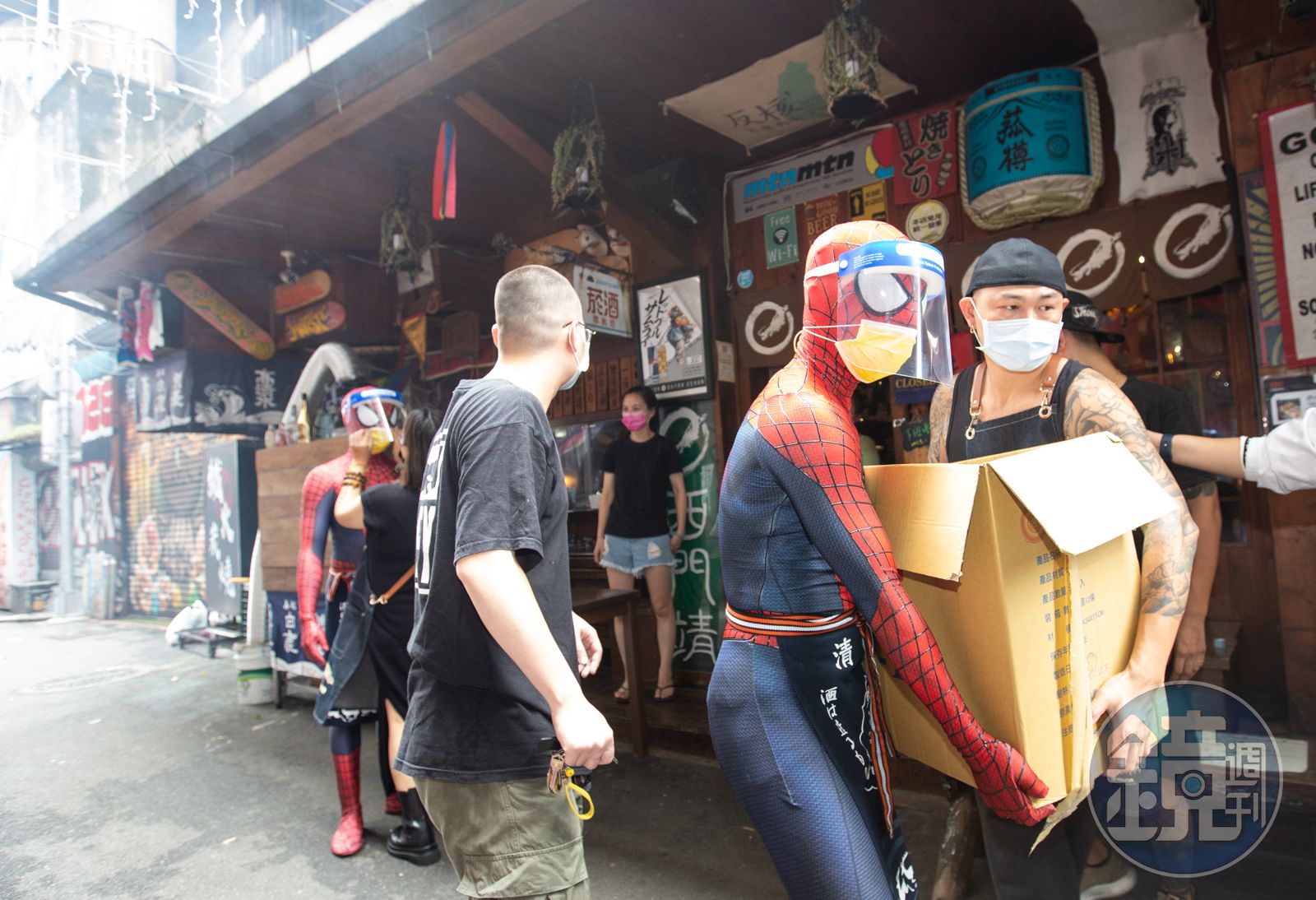 「西門靖」居酒屋今派出蜘蛛人、忍者龜給醫護人員送上愛心便當。發布時間:2021.06.23 15:33 臺北時間