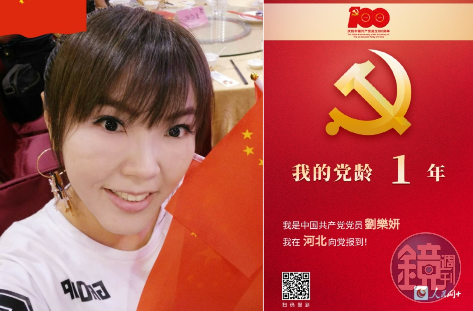 劉樂妍長年在中國發展,狂讚中共治理優異,批評台灣政府也是炮火猛烈。昨日她突然在自己的微博po出一張慶祝中共建黨百年的照片,下方文字寫道「我的黨齡1年,我是中國共產黨黨員劉樂妍,我在河北向黨報到!」