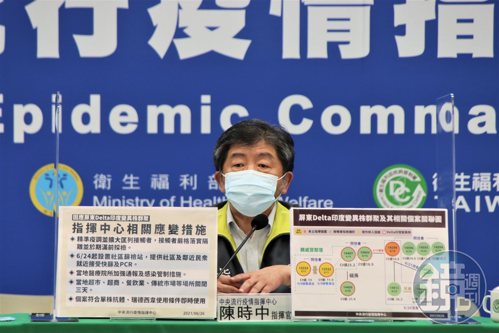 針對屏東驚見Delta印度變異株,指揮中心表示目前累計12例確定病例,其中6例經基因定序後,均為Delta印度變異株,分別為秘魯境外移入確診祖孫2人(案13332、13333)及案14298、14407、14408、14409。