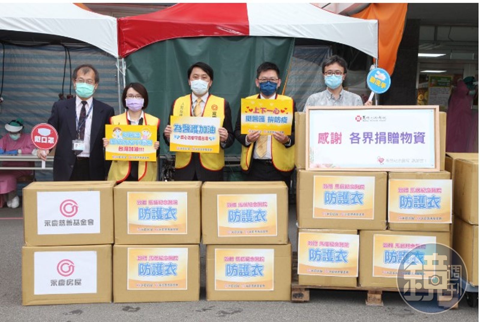在確認院方的需求後,購置2,000件隔離衣,並於25日在淡水馬偕醫院恩典樓前舉行捐贈儀式。楊哲彥部長表示:「很高興有機會,也有能力為醫護人員盡一分心,也讓醫護人員知道,在對抗疫情的路上他們並不孤單。」