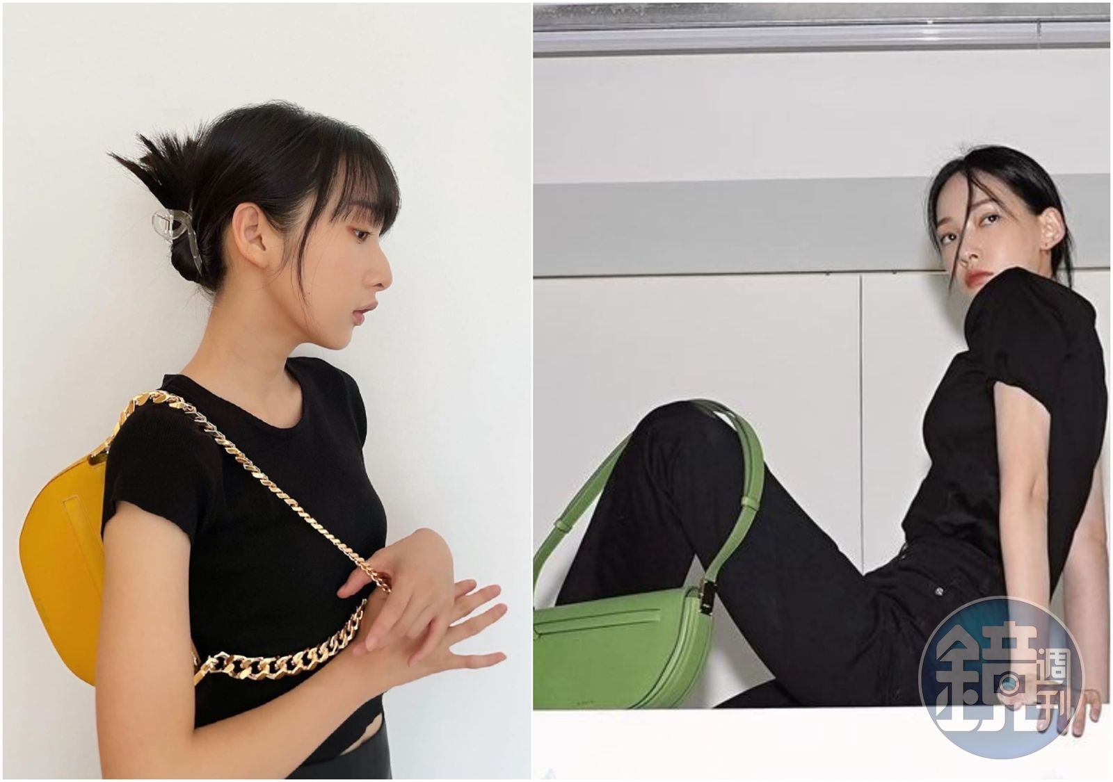 (左起)李沐、林映唯皆以黑色服裝搭配不同的限量色系Olympia包款。發布時間:2021.06.29 12:02 臺北時間