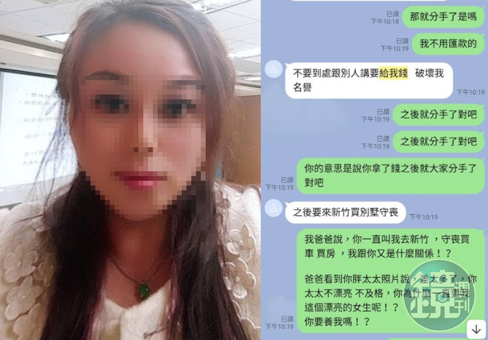 A女指出,自己在上市公司上班,有美國名校碩士學歷,目前也在政大法研所進修,楊當時亦認為她的背景不錯, 有機可趁,所以不顧自己已婚,來欺騙她的感情、錢財;楊斷絕與她的聯繫後,還對外污衊她是「矮胖女」「醜女」,根本是侮辱她的人格。