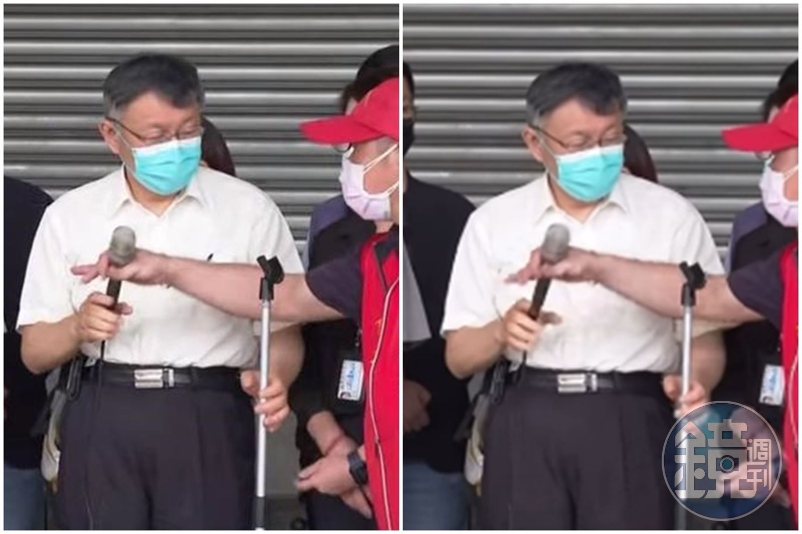 柯文哲被林昶佐嗆,正準備拿麥克風回應時,麥克風就秒被搶走。(翻攝疾管署Youtube)發布時間:2021.07.02 15:36 臺北時間