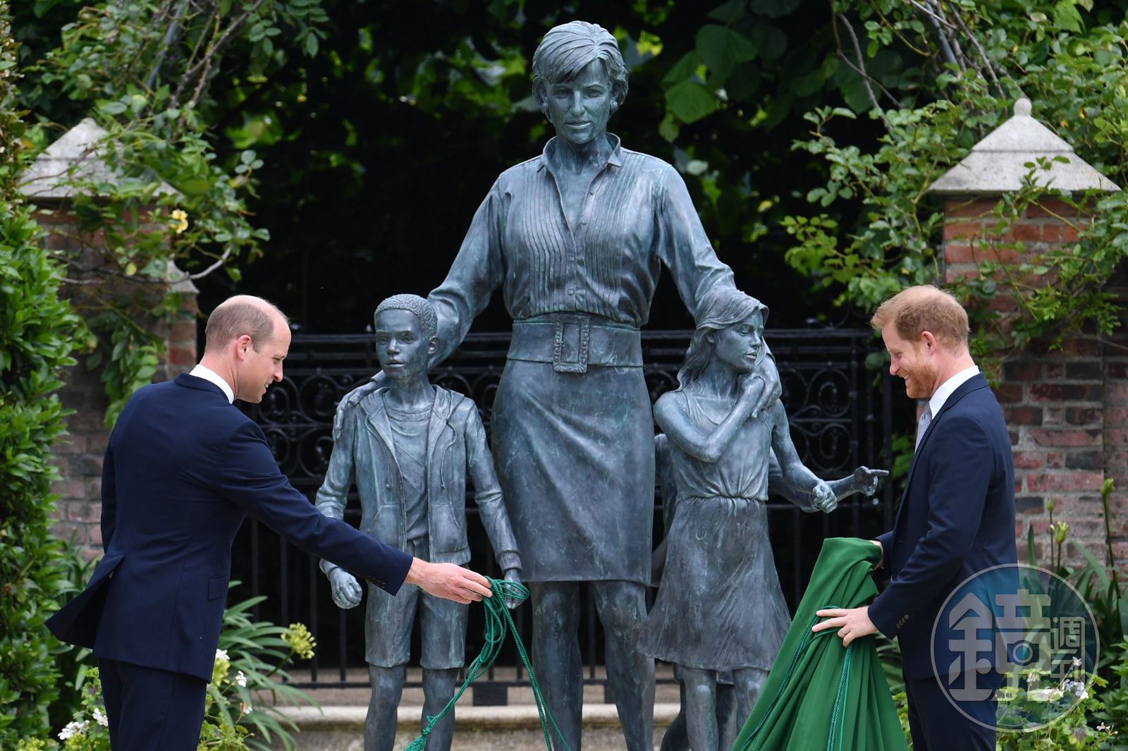 黛妃紀念雕像昨在肯辛頓宮花園揭幕,王室兄弟共同發表聲明:「今天是我們母親60歲冥誕,我們銘記她的愛、力量與品格,這些特質使她成為世間善良的力量,使無數人的生活變得更好。每一天,我們都希望她仍和我們在一起,希望這座雕像永被視為她生命和遺志的象徵。」他們感謝雕塑家、花園設計師、捐助者,以及世界各地紀念黛妃的人們。