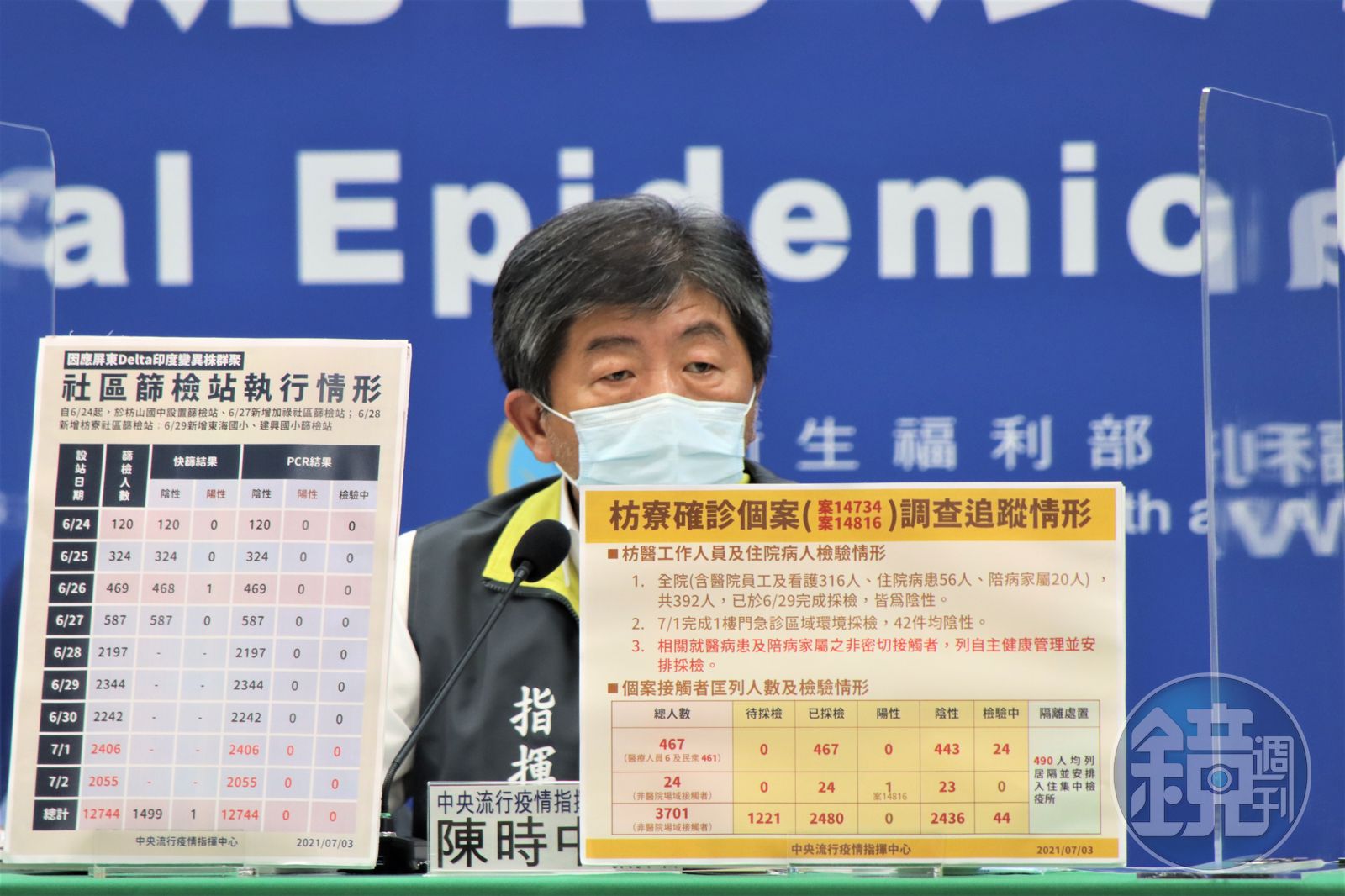 陳時中進一步說明,目前屏東社區篩檢可說是告一段落,這幾天連續5天檢測2千多人,PCR結果也都陰性,所以社區是安全,剩下相關接觸者,採驗完成後應該可以告一段落,但從最後接觸日6月27日起開始算,仍必須持續監測到7月11日。