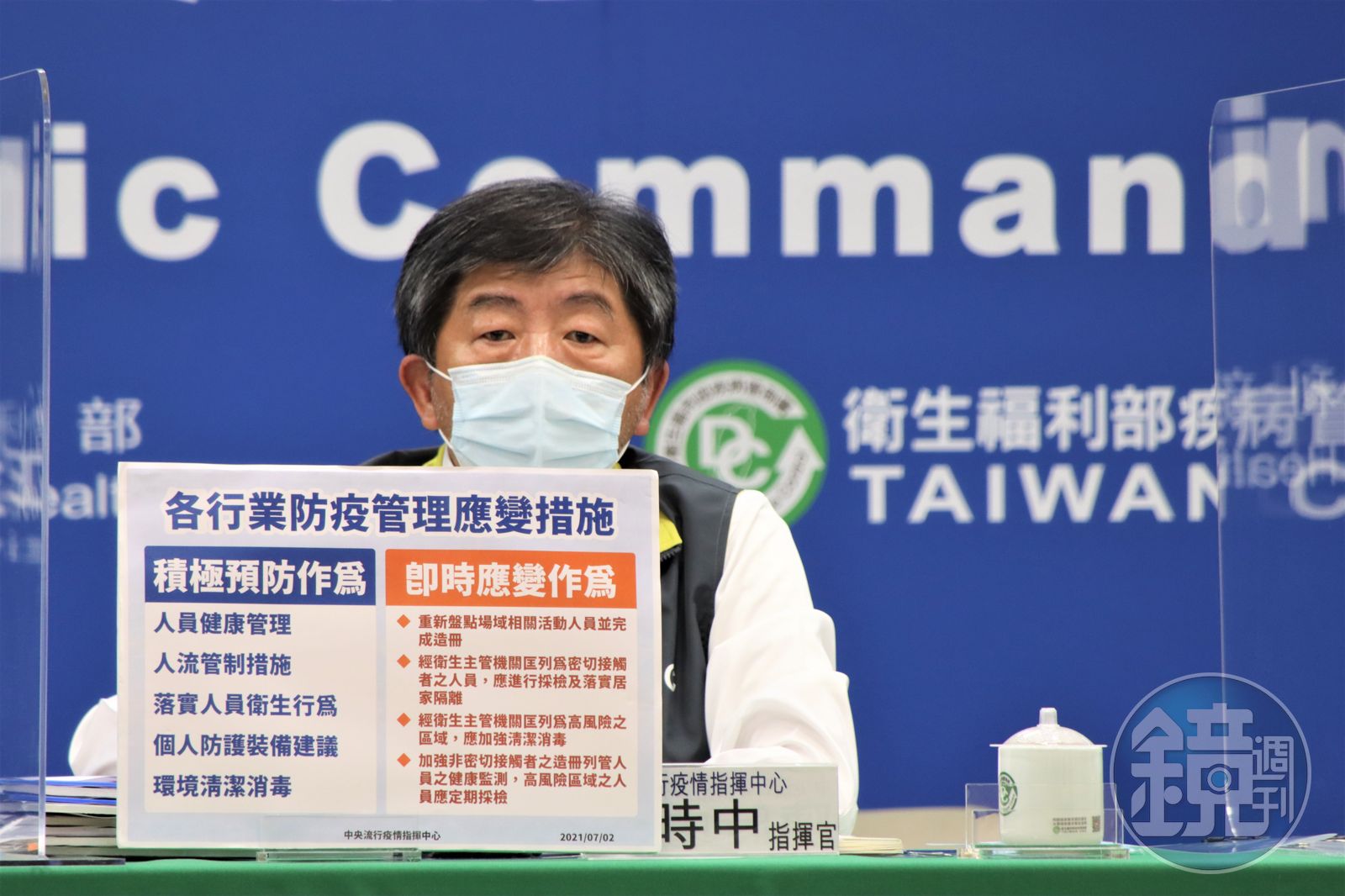 中央流行疫情指揮中心指揮官陳時中說明疫苗進度。(指揮中心提供)發布時間:2021.07.03 15:14 臺北時間