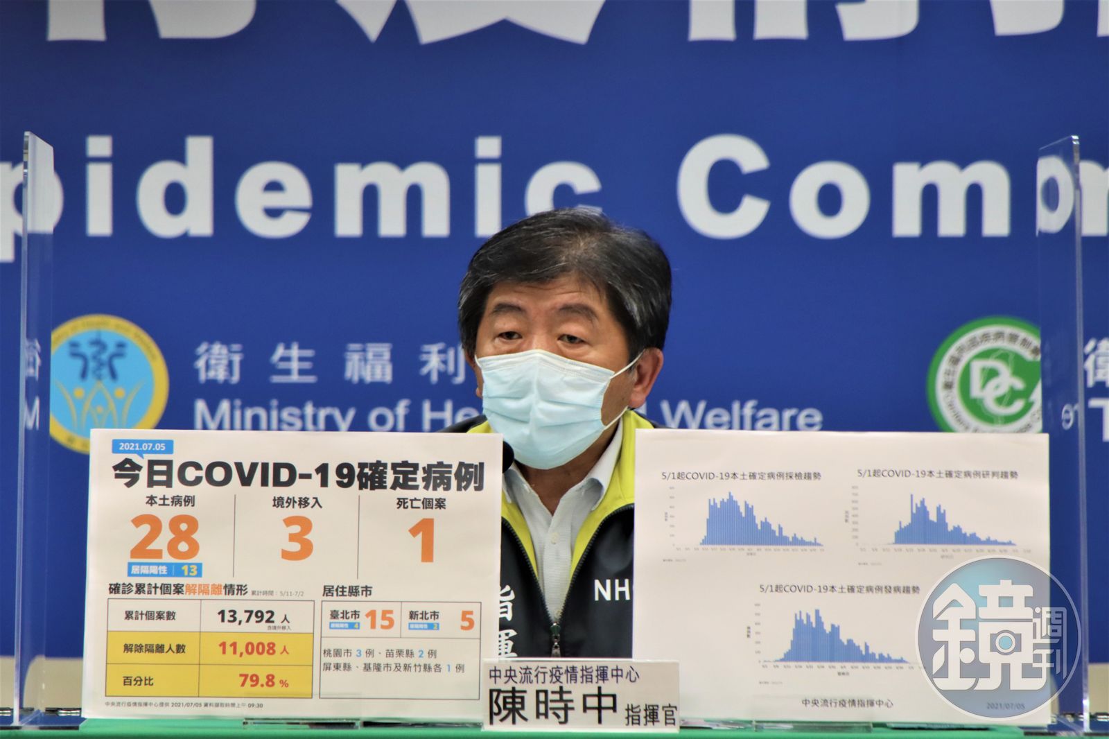陳時中再回應解封一事。(指揮中心提供)發布時間:2021.07.05 17:10 臺北時間