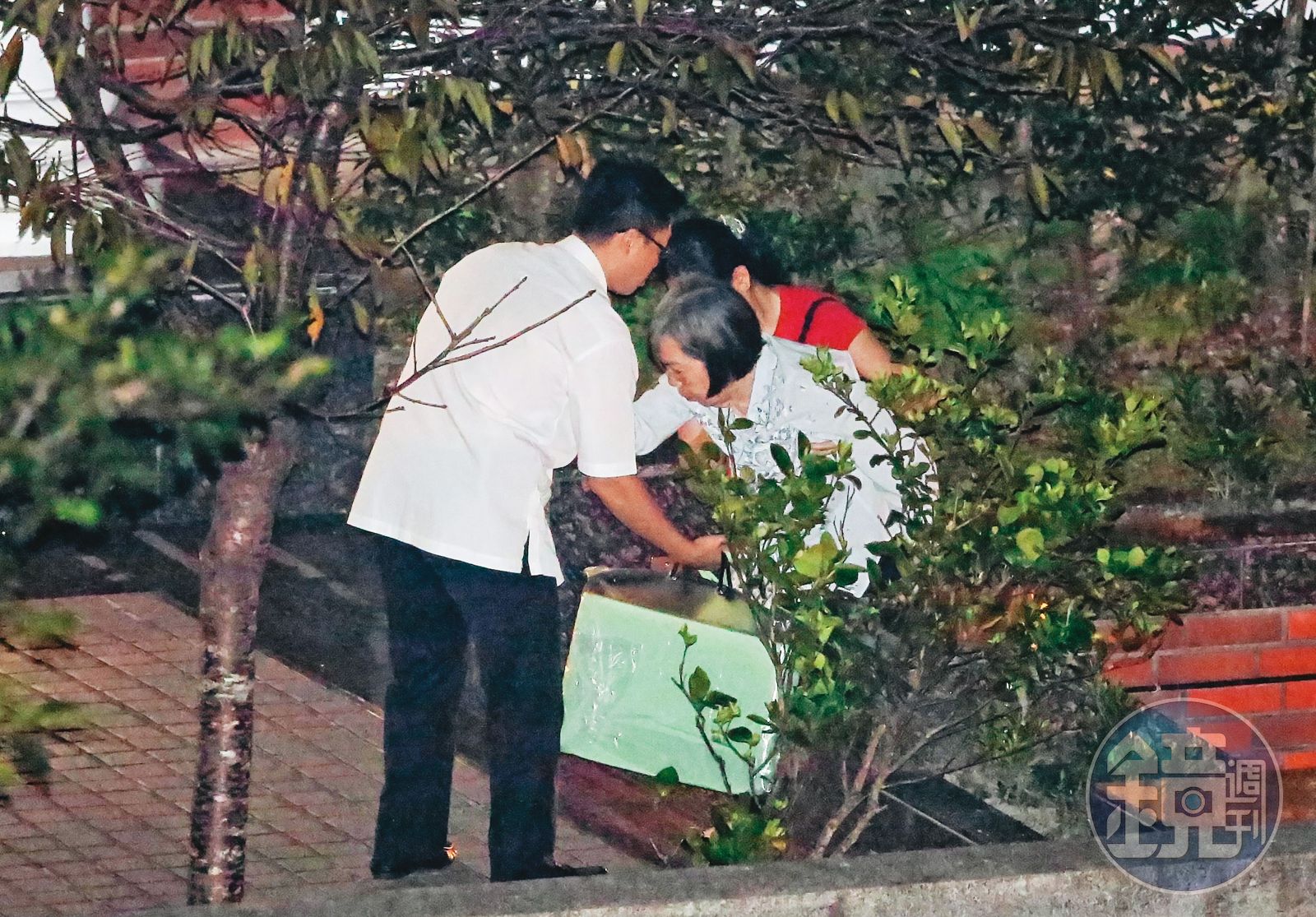 曾文惠(中)因體力衰退,在李登輝過世後幾乎足不出戶。圖為去年7月30日李過世當晚,曾從醫院返回翠山莊。發布時間:2021.07.06 07:40 臺北時間