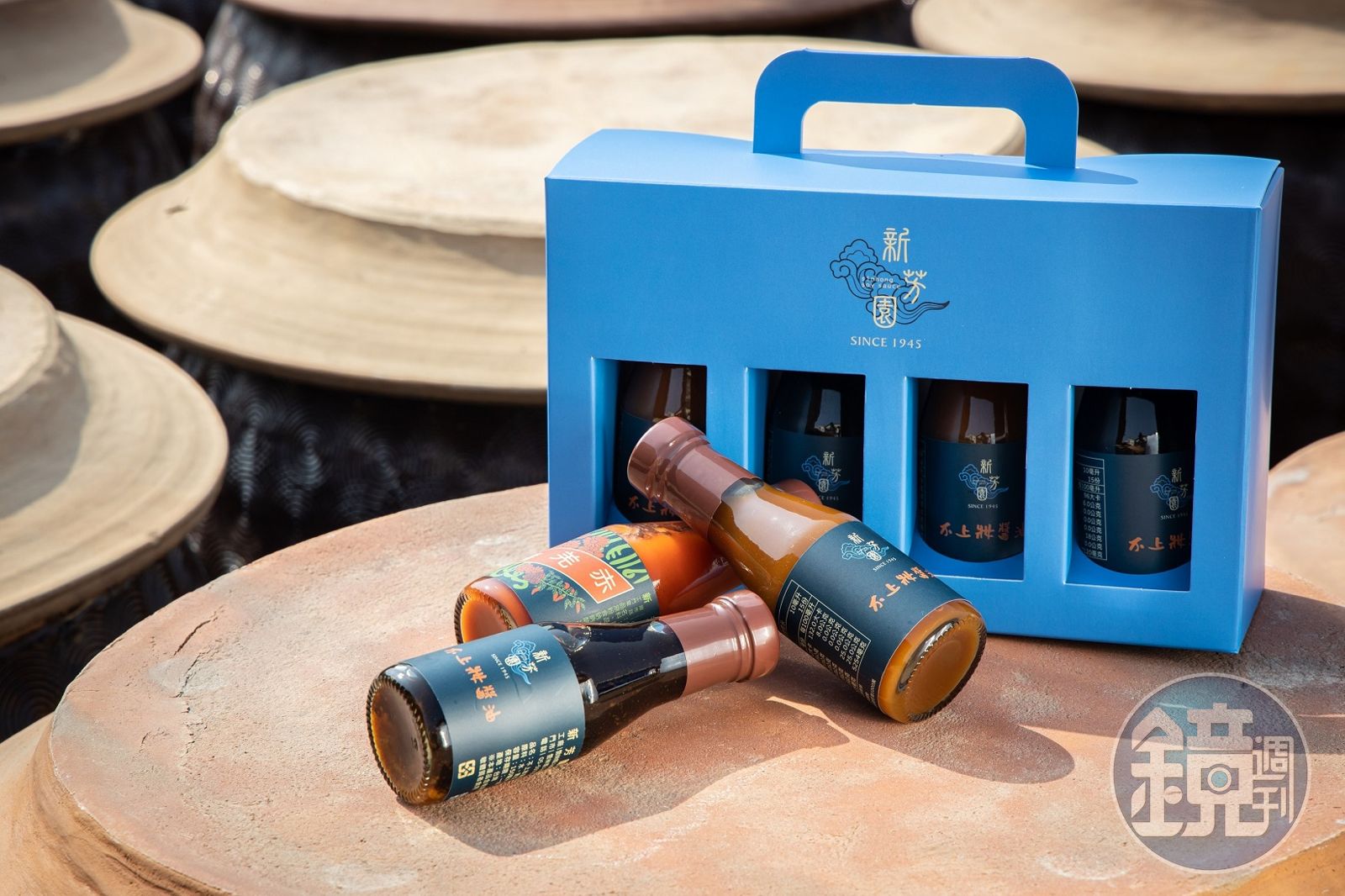 直到第三代老闆王榮生接手後,2016年,新芳園的「不上妝醬油」,在《台灣醬油誌》110款醬油評比中拿到全國評鑑冠軍,自此打響名號。而不使用人工化學添加物、不添加焦糖色素的「不上妝」醬油,得靠時間才能釀造出天然琥珀原色,味道比一般醬油略鹹,卻有著自然豆香且回甘。