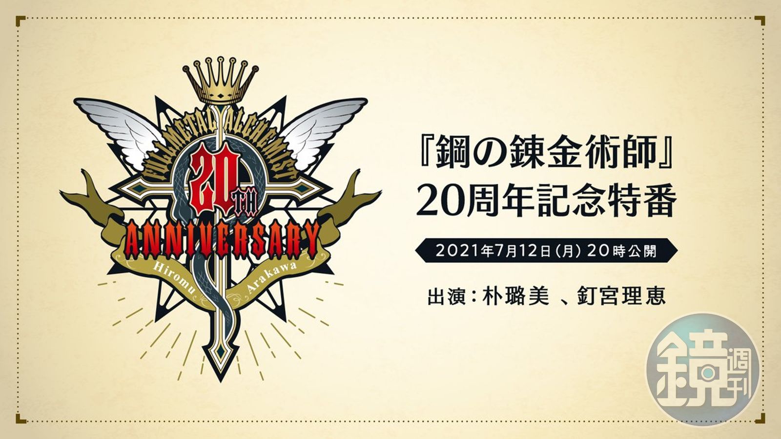 適逢作品問世20週年,官方決定在日本時間7月12日晚間8時舉行特別節目,2位主角「愛德華」與「阿爾馮斯」的動畫聲優朴璐美、釘宮理惠都會參與。關於節目內容官方保密到家,目前僅知除了過去作品的介紹之外,也會有全新訊息在節目中公開。