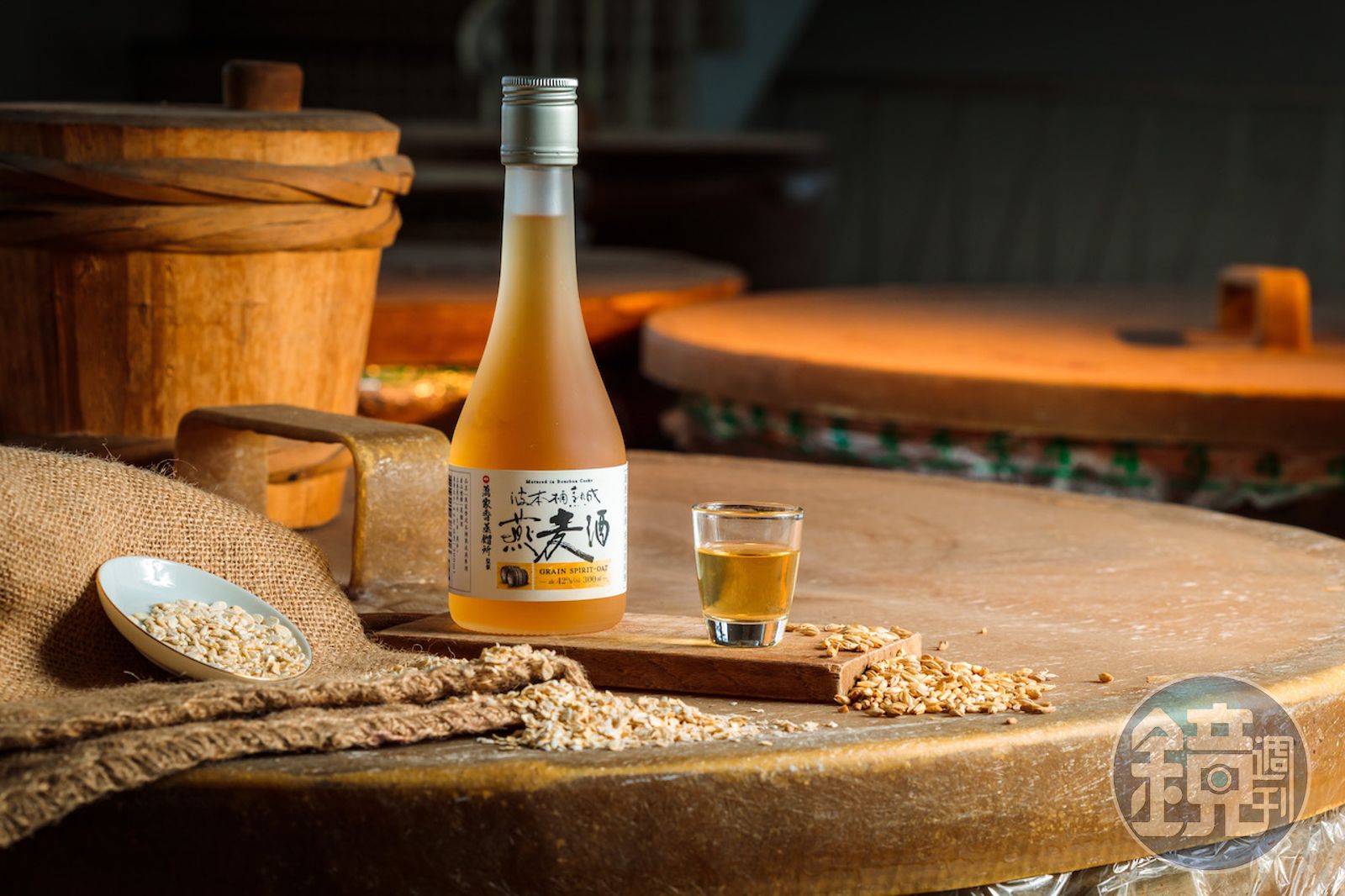 洪文傑把燕麥、大麥蒸餾後放入波本桶陳放,原本透明的酒液轉為琥珀色澤,這支「波本桶熟成燕麥酒」帶有濃厚穀物氣味,相較其他2支常被選為屏東代表酒款的「燕麥燒酒 吟露」「燕麥燒酒 夢之酒」,滋味更顯深邃,也呼應萬家香本來就是調配風味的老手。