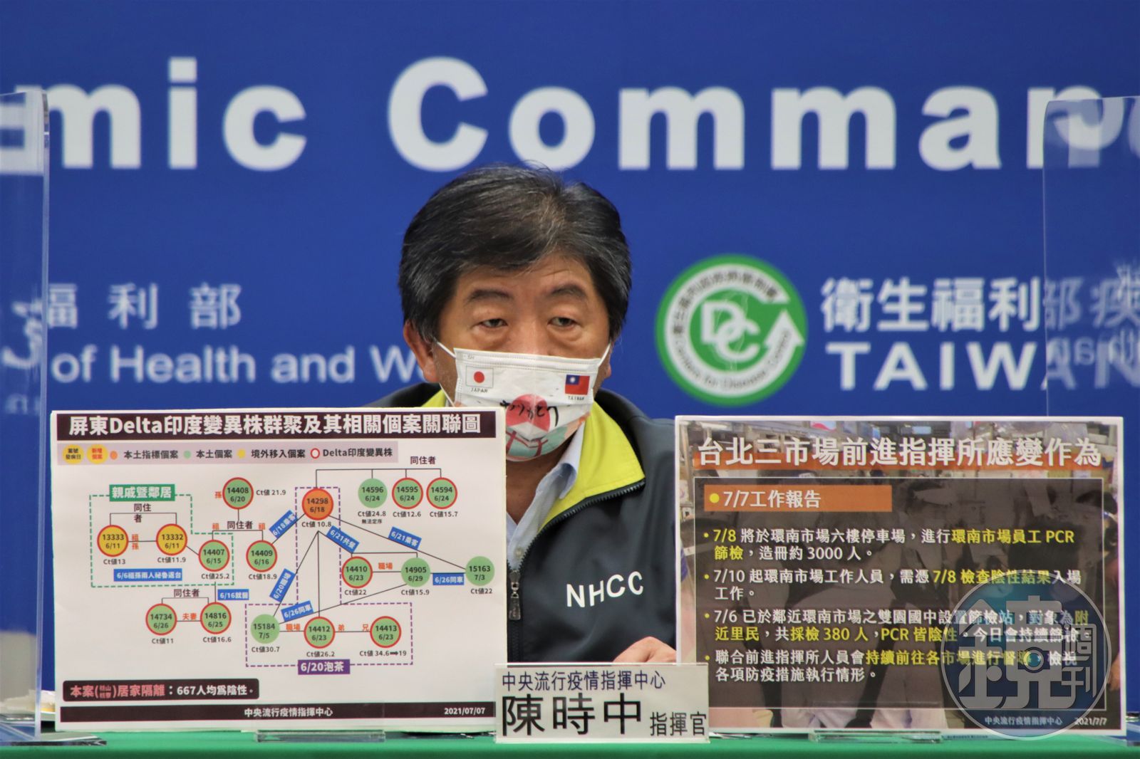 至於環南市場的部分,陳時中則稱,北農群聚相關之台北三市場目前並無特別狀況發生,已按原訂計畫進行防疫,明(8)日會針對環南市場員工篩檢,造冊人數3,000人,10日起人員需要持有8日之PCR陰性證明才可以進入。此外6日於雙園國中設置之篩檢站已採檢380位里民PCR均為陰性,因此整體看起來第三市場疫情已趨於穩定,不過還是要經過明天大規模之篩檢才可以知道是否確診黑數沒被找出。